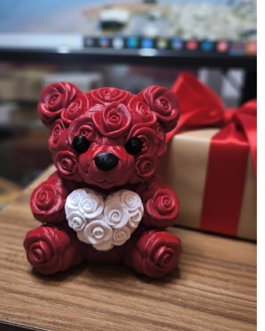 Bu 10 cm 3D kalp ayıcık, modern tasarım anlayışı ile romantik temayı bir araya getirir. Gül desenli yüzey yapısı ürüne üç boyutlu bir derinlik kazandırır. Kalp detayı ise ürünü sadece dekoratif değil aynı zamanda anlamlı bir hediye haline getirir. Kompakt yapısı sayesinde küçük alanlarda bile rahatlıkla sergilenebilir. Ofis masası, sehpa, komodin veya vitrin üzerinde estetik bir tamamlayıcı olarak kullanılabilir. 3D baskı üretim kalitesi sayesinde detaylar belirgin, yüzey pürüzsüzdür. Uzun ömürlü kullanım için tasarlanmıştır. Romantik atmosfer oluşturmak isteyenler için ideal bir dekor ürünüdür.