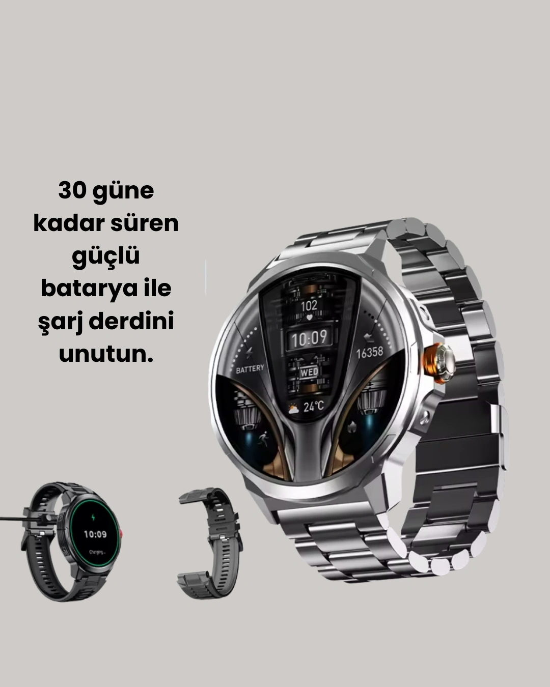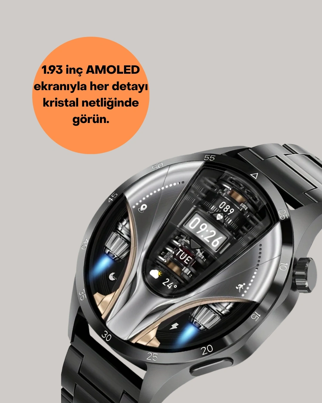 SW80 Akıllı Saat, 1.93 inç büyüklüğündeki Ultra HD dokunmatik ekranı ile kullanıcılarına göz alıcı bir deneyim sunar. 360×360 çözünürlük sayesinde her detay daha net, renkler ise çok daha canlı görünür. Büyük ekran, menüler arasında kolayca gezinebilmenizi sağlarken, mesajlar, aramalar ve sosyal medya bildirimlerini anında bileğinizden takip etme imkânı sunar. Şık metal kasa tasarımı modern çizgilerle buluşarak hem günlük kullanımda hem de özel davetlerde tarzınıza uyum sağlar. Saatin üç farklı kordon seçeneği (metal, deri, silikon) ile kombinlerinize göre kişiselleştirme yapabilir, spordan iş toplantısına her ortamda kullanabilirsiniz. Yüksek parlaklık özelliği sayesinde gün ışığında dahi ekranı rahatça görebilirsiniz. SW80 sadece bir saat değil, aynı zamanda akıllı bir yaşam yardımcısıdır.