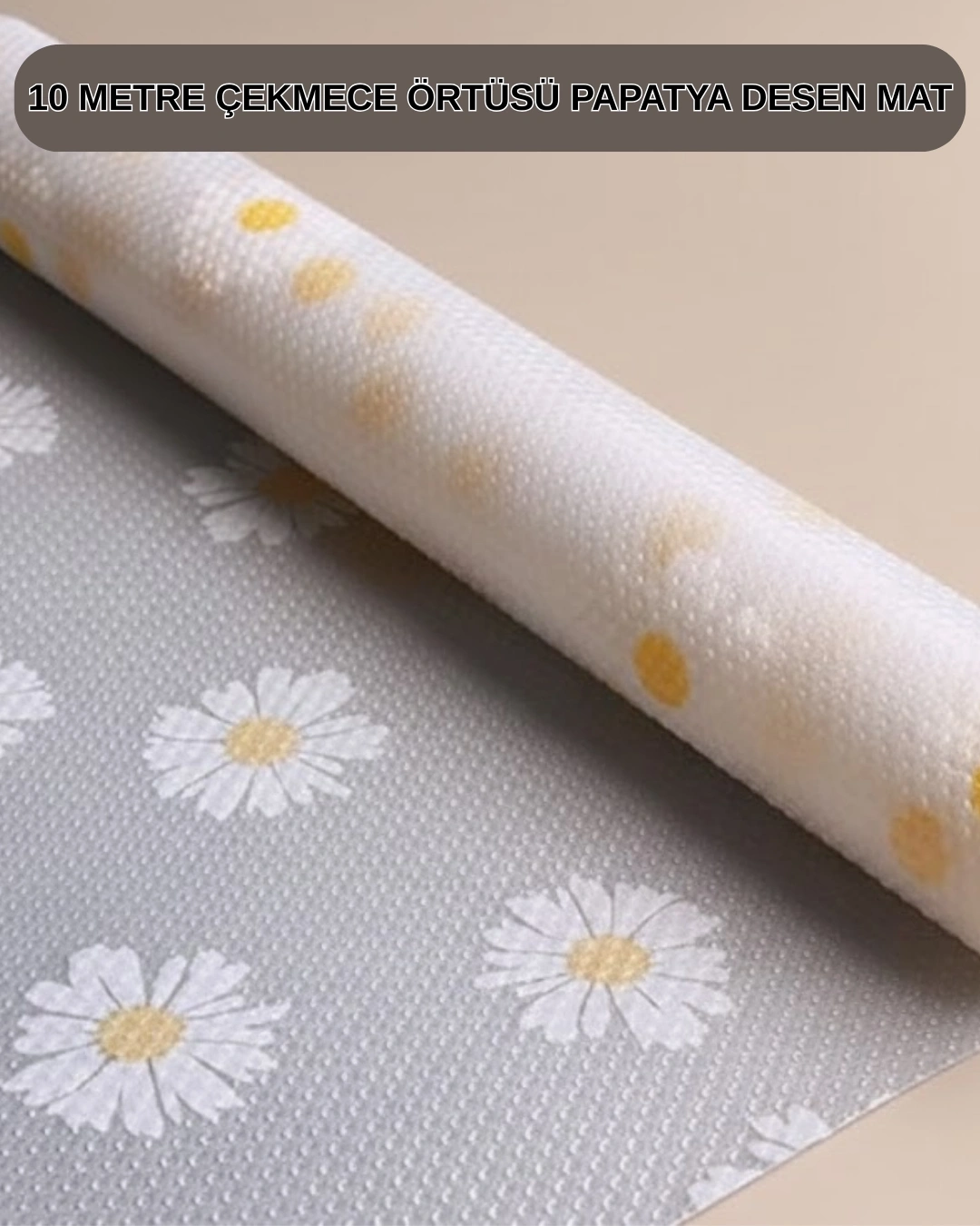 Papatya desenli bu çekmece ve dolap içi örtü, 10 metre uzunluğu ile çoklu kullanım imkânı sunar. Kesilerek farklı alanlarda kullanılabilir. Kaymaz yapısı sayesinde eşyalar sabit kalır. Yapışmaz özelliği yüzeylere zarar vermez. Kolay temizlenir ve uzun süre kullanılabilir.