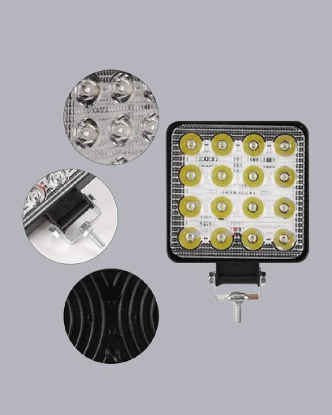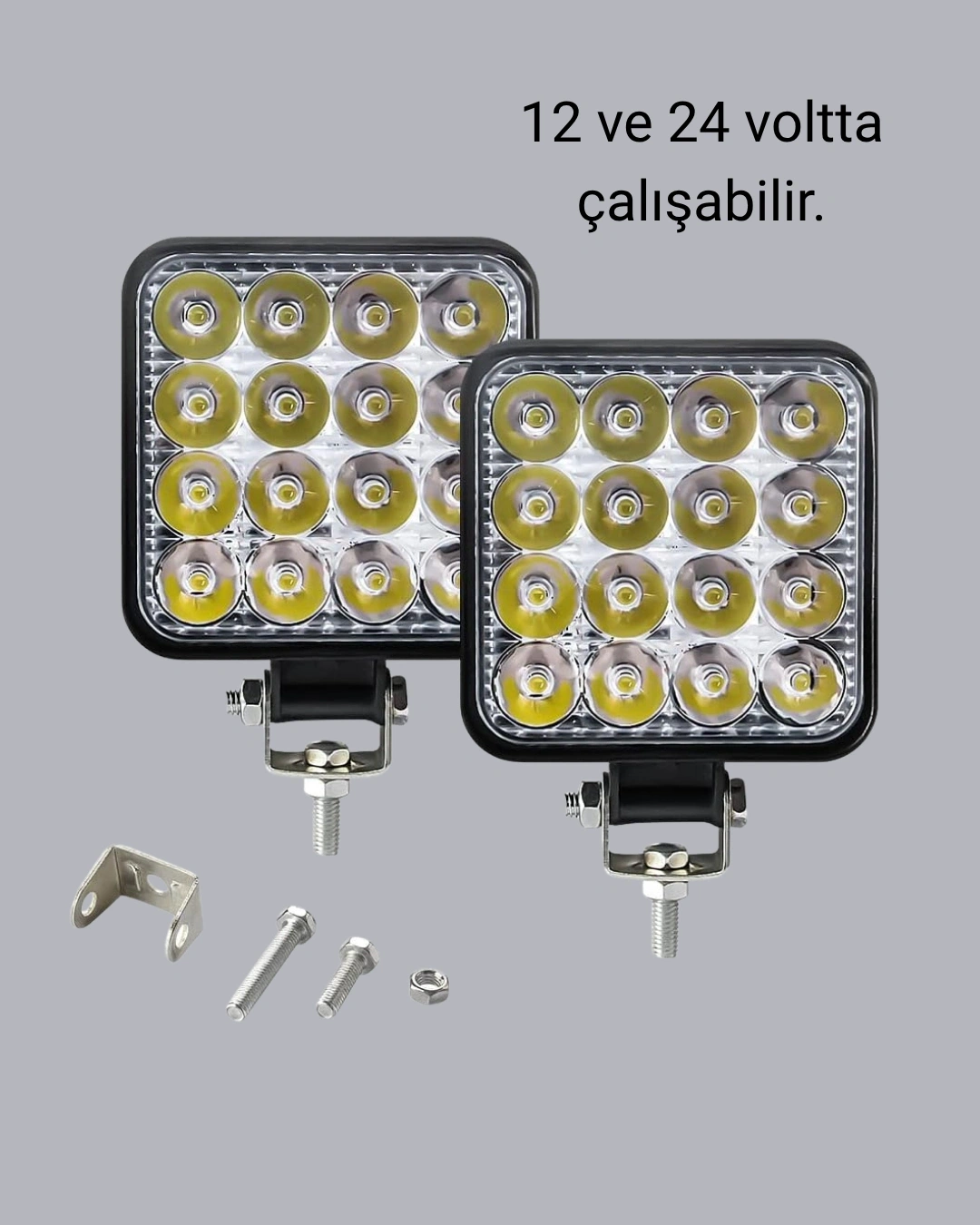 16 LED teknolojisi ile donatılmış bu off-road çalışma lambası, zorlu hava ve yol koşullarında bile yüksek parlaklık sağlar.Alüminyum gövdesi, darbeye ve suya karşı tam koruma sunarak uzun ömürlü kullanım garantiler.12V ve 24V sistemlerle tam uyumlu yapısı sayesinde 4x4 off-road araçlar, iş makineleri, forkliftler, traktörler, kamyonlar, tekneler ve ATV’lerde güvenle kullanılabilir.Güçlü beyaz ışığı sayesinde gece sürüşlerinde görüş alanınızı genişletir, güvenli bir sürüş deneyimi sunar.