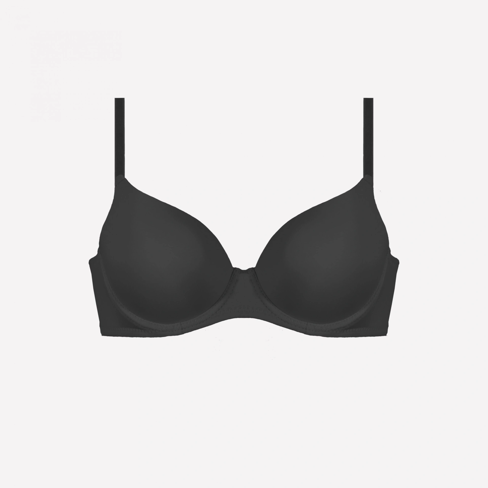 Siyah-ten 2'li Mikro Kumaş Push Up Dolgulu Balenli Günlük Destekli Sütyen