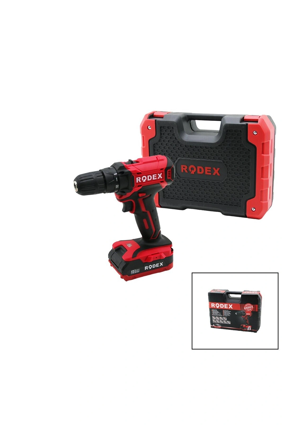 2 KADEME HIZ - VİTES ŞARJLI=ÇİFT BATARYA 17PCS UÇLU MATKAP 0-350 / 0-1350 RPM 21V/2.0A LI-ION RDX-33