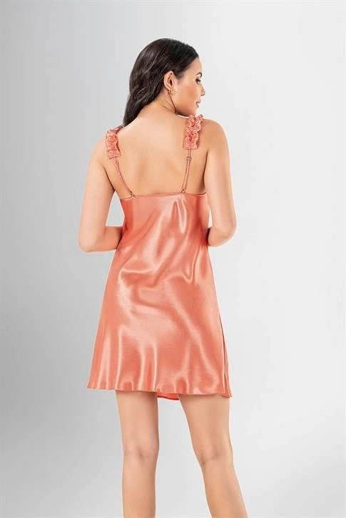 Sırt Dekolteli Degajeli Somon Saten Gecelik