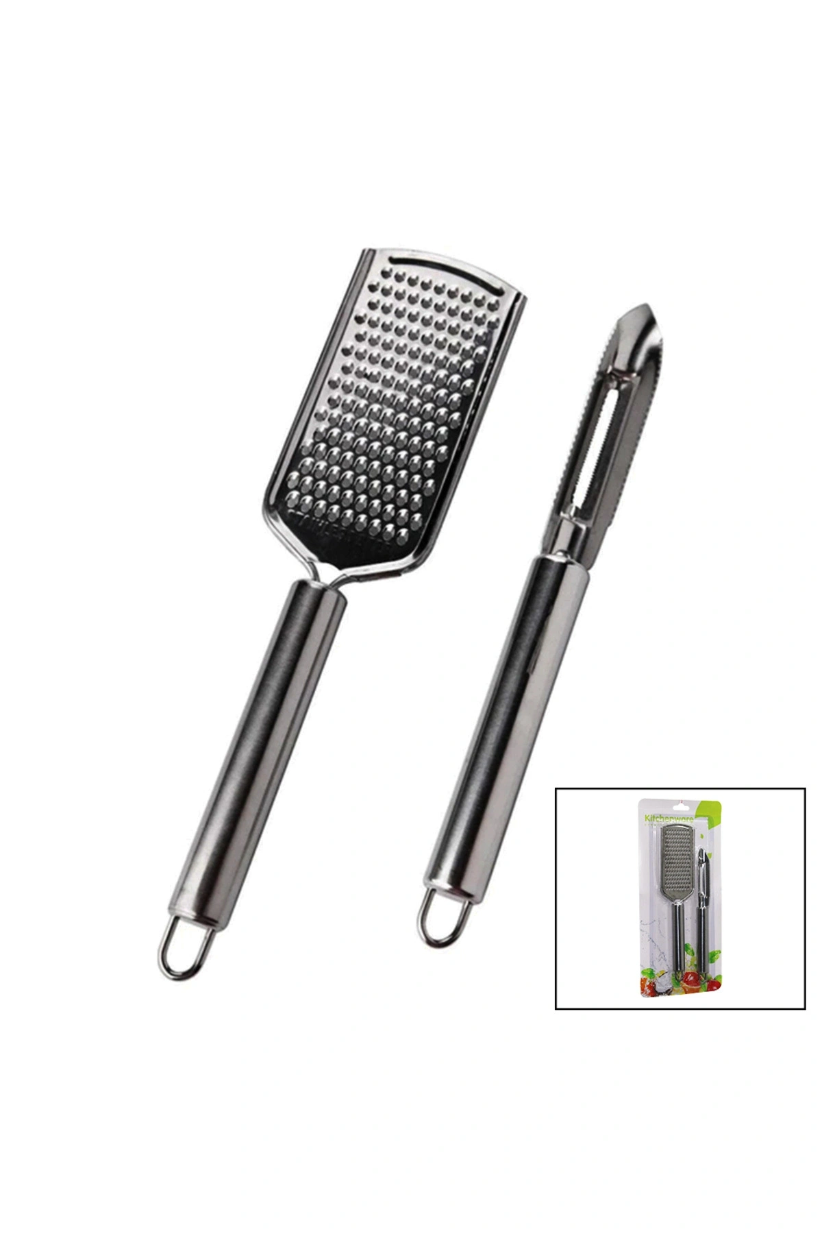 PİRAMİT METAL MUTFAK RENDESİ ÇİFT YÖNLÜ RENKLİ PLASTİK ÜSTTEN TUTMALI (5324)