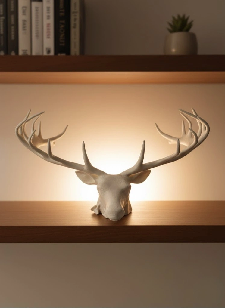 Bu 25 cm’lik geyik başı biblo, bulunduğu ortama zarif bir sanat eseri havası kazandırır. İnce detaylarla modellenmiş boynuz yapısı ve yumuşak mat yüzey dokusu, ürünü hem modern hem de doğadan ilham alan dekorasyon tarzlarına uygun hâle getirir. Ürün hafiftir, kolayca taşınabilir ve dilediğiniz yere konumlandırılabilir. Kitaplık raflarında, TV ünitelerinde, kafe dekorlarında veya butik vitrinlerde lüks bir görünüm sağlar. Hem fotoğraf dekoru hem de iç mekân styling objesi olarak profesyonel görüntüler yaratmak isteyenler için ideal bir seçimdir.