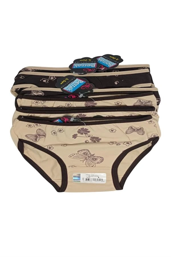 2566 Berrak Kız Kahverengii Baskılı Bikini 6 Adet 1-2 Yaş