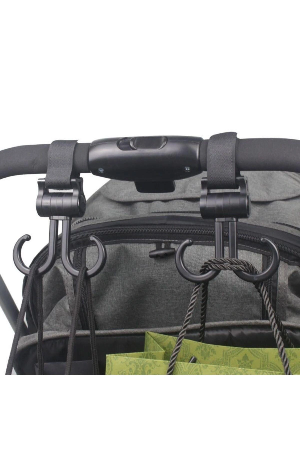 ® İkili Bebek Arabasına Takılabilen Eşya Taşıma Aparatı Plastik Kanca İkili bebek arabasına takılabilen eşya taşıma aparatı plastik kanca, kullanıcıların bebek arabasında ihtiyaç duydukları eşyaları taşımalarını kolaylaştıran ve düzen sağlayan bir üründür.; İşte ürün hakkında detaylı açıklamalar: Bebek Arabası Uyumluluğu: Bu aparat, genellikle bebek arabalarına uygun olarak tasarlanmıştır.; İkili bebek arabalarının çoğunda kullanılabilecek şekilde tasarlanmış olan aparat, arabanın çeşitli noktalarına takılabilir ve kullanıcıların ihtiyaç duydukları eşyaları taşıyabilir.; Plastik Kanca: Ürünün ana malzemesi plastikten yapılmıştır.; Plastik malzeme, hafif ve dayanıklı bir yapıya sahiptir, bu da ürünün uzun süreli kullanım için uygun olmasını sağlar.; Taşıma Kapasitesi: Aparat, genellikle hafif ve küçük boyutlu eşyaların taşınması için kullanılır.; Örneğin, bebek bezi çantası, alışveriş poşeti, oyuncaklar gibi eşyaları taşımak için idealdir.; Kolay Montaj: Aparatın bebek arabasına takılması oldukça kolaydır.; Genellikle arabanın çeşitli yerlerine takılabilen bir montaj mekanizmasıyla birlikte gelir.; Kullanıcılar, talimatları takip ederek veya basit bir montaj işlemiyle aparatı arabalarına takabilirler.; Düzen Sağlama: Bu aparat, bebek arabasında düzen sağlamak için kullanışlı bir çözümdür.; Eşyaların dağınık bir şekilde arabada bulunmasını önler ve kullanıcıların ellerini serbest bırakarak bebeklerine daha iyi odaklanmalarını sağlar.; Bu ikili bebek arabasına takılabilen eşya taşıma aparatı plastik kanca, kullanıcıların günlük yaşamlarını daha düzenli ve kolay hale getirmek için tasarlanmıştır.; Pratik kullanımı, dayanıklı yapısı ve düzen sağlama özelliğiyle kullanıcıların memnuniyetini sağlar.
