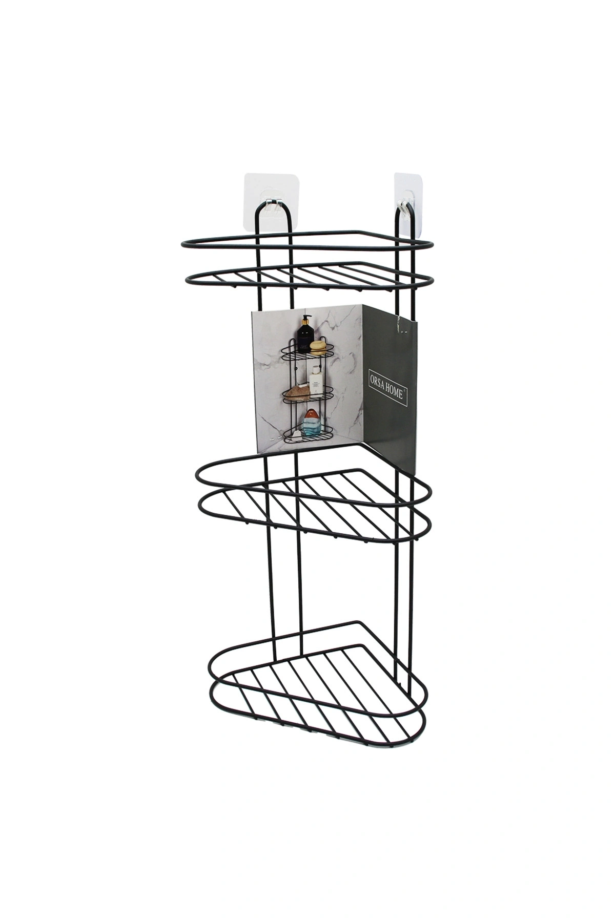 3 KATLI SİYAH METAL KÖŞE RAFI (5324)