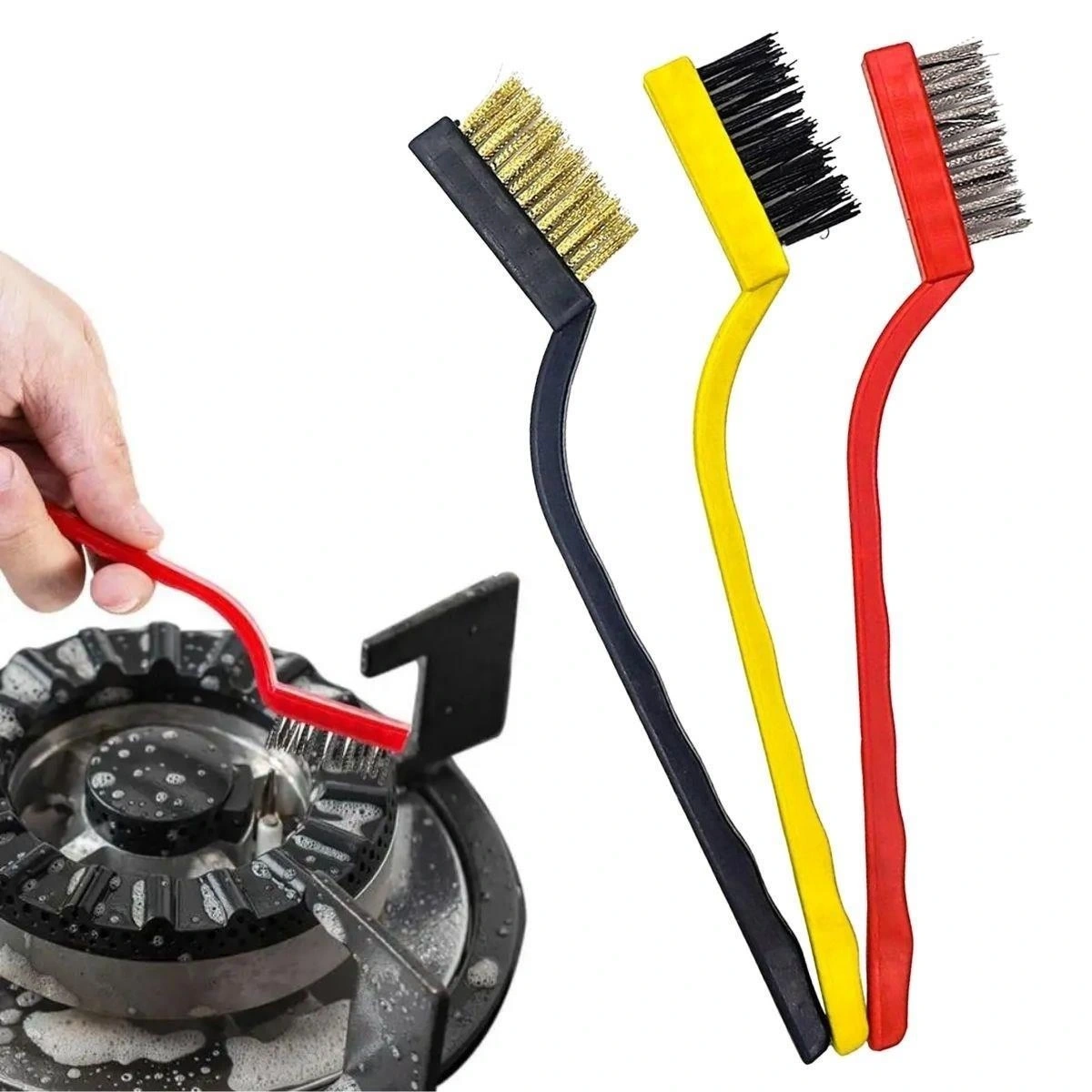 3'lü Detaylı Temizlik Tel Fırça, bakır tel, demir tel ve sert plastik tel olmak üzere üç farklı malzemeden üretilmiştir. Bu ürün, farklı yüzeylerde detaylı temizlik için kullanılmak üzere tasarlanmıştır. Temizliğinizi daha detaylı bir şekilde yapmanızı sağlayacak olan bu pratik temizlik fırçaları temizlik yaparken size en yardımcı aparatlar olacaklar.