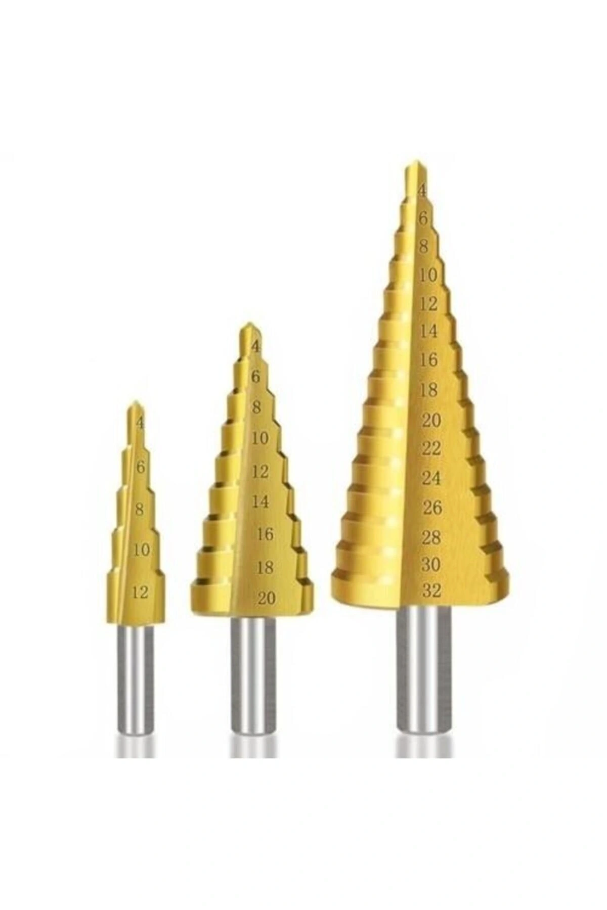 3 lü Kademeli Matkap Ucu Sac Delme Seti 3 Parça Kademeli Uç 3 Parça Yüksek Hız Çeliğinden mamul kademeli matkap uç seti.