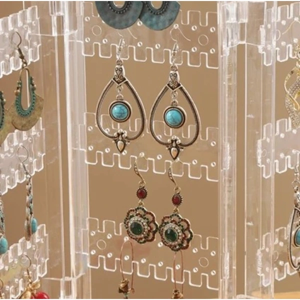 360° DÖNEBİLEN TAKI ORGANİZERİÜrün Özellikleri360° dönebilen takı organizeri, şeffaf ve dayanıklı plastikten üretilmiş olup şık ve kullanışlı bir tasarıma sahiptir. 30 cm yüksekliği ve 16,5x16,5 cm taban ölçüsüyle geniş depolama alanı sunar. Kolay dönebilen yapısı sayesinde küpe, kolye, bileklik ve yüzüklerinizi düzenli bir şekilde sergilemenize ve pratik bir şekilde ulaşmanıza olanak tanır. Takılarınızı karışmadan saklamanızı sağlayarak hem evinizde dekoratif bir görünüm yaratır hem de kullanışlı bir organizer görevi görür.Paket İçeriği1 adet 360° Dönebilen Takı Organizeri