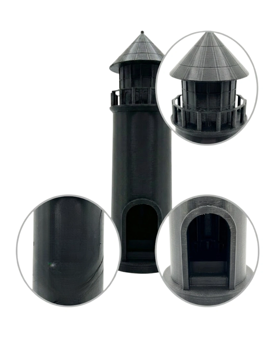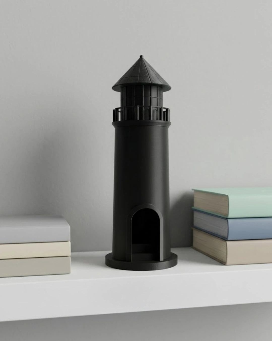 Hem dekoratif hem fonksiyonel bir ürün arayanlar için tasarlanan 3D siyah deniz feneri, mumluk olarak kullanılabilen şık bir masa üstü aksesuarıdır. İç haznesine yerleştirilecek LED mum veya küçük ışık sayesinde ortama sıcak ve estetik bir ambiyans kazandırır. Minimal ve güçlü tasarım çizgileri sayesinde modern ev dekorasyonuna uyum sağlar. Sehpa, kitaplık, komodin veya çalışma masası üzerinde dikkat çekici bir obje olarak kullanılabilir. Siyah rengi sayesinde sofistike bir görünüm sunar. Dayanıklı malzeme yapısı sayesinde uzun ömürlüdür ve kolay deforme olmaz. Hediyelik dekoratif ürün olarak da tercih edilebilecek zamansız bir tasarımdır.