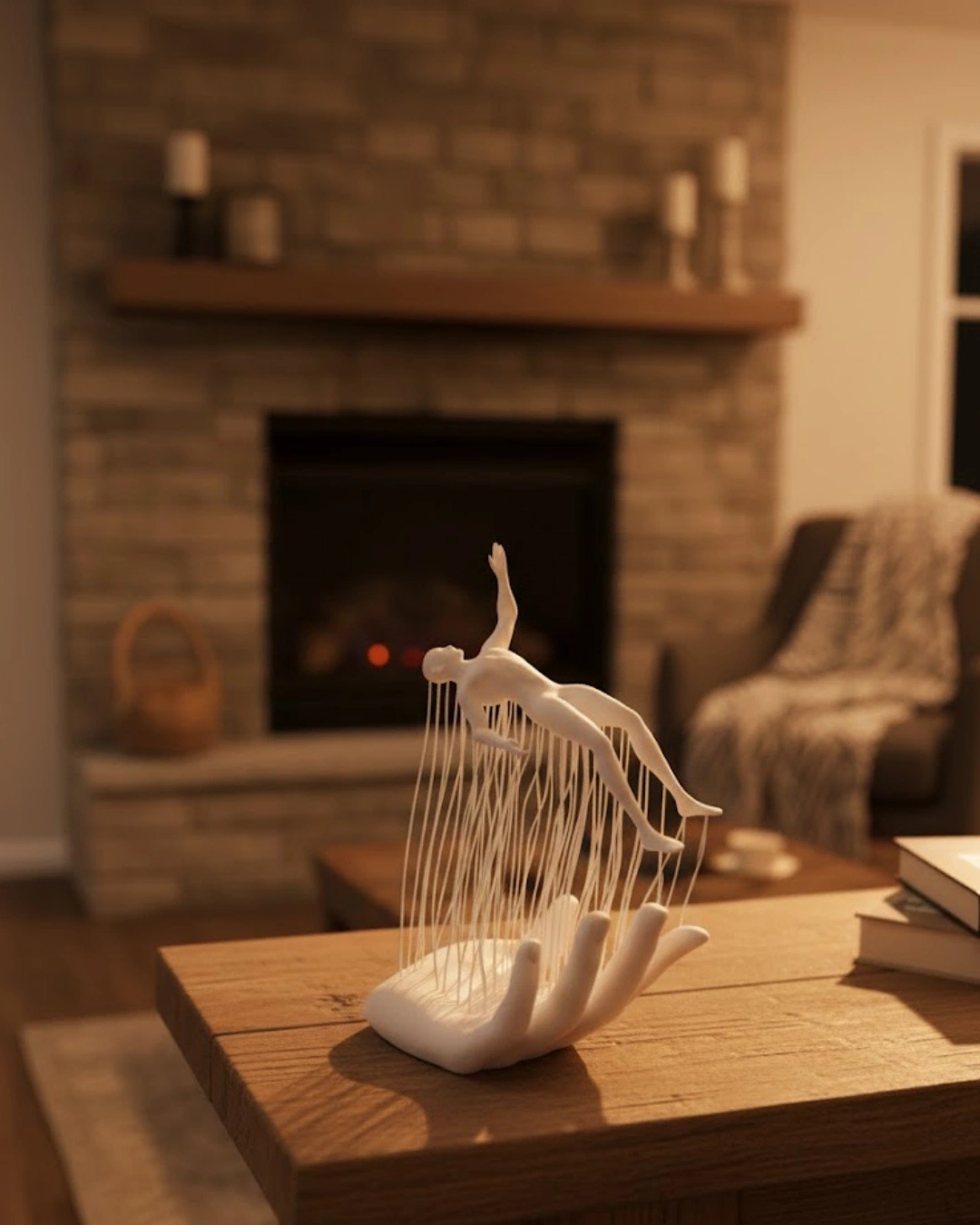 Zarif ve anlamlı tasarımıyla öne çıkan 3D El İnsan Figürü Beyaz, yaşam alanlarına modern bir estetik katar. El formu ve insan figürünün birleşimi, özgürlük ve denge temasını soyut bir şekilde yansıtır. Beyaz renkli yüzeyi sayesinde her dekorasyon stiline kolayca uyum sağlar. Raf, masa, sehpa veya konsol üzerinde sergilendiğinde bulunduğu alana sanatsal bir dokunuş kazandırır. Modern, minimal ve İskandinav tarzı dekorasyonlarla kusursuz bir uyum sunar. Kompakt boyutları sayesinde yer kaplamaz ancak güçlü bir dekoratif etki yaratır. Ev ve ofis dekorasyonunda fark yaratmak isteyenler için ideal bir seçimdir.