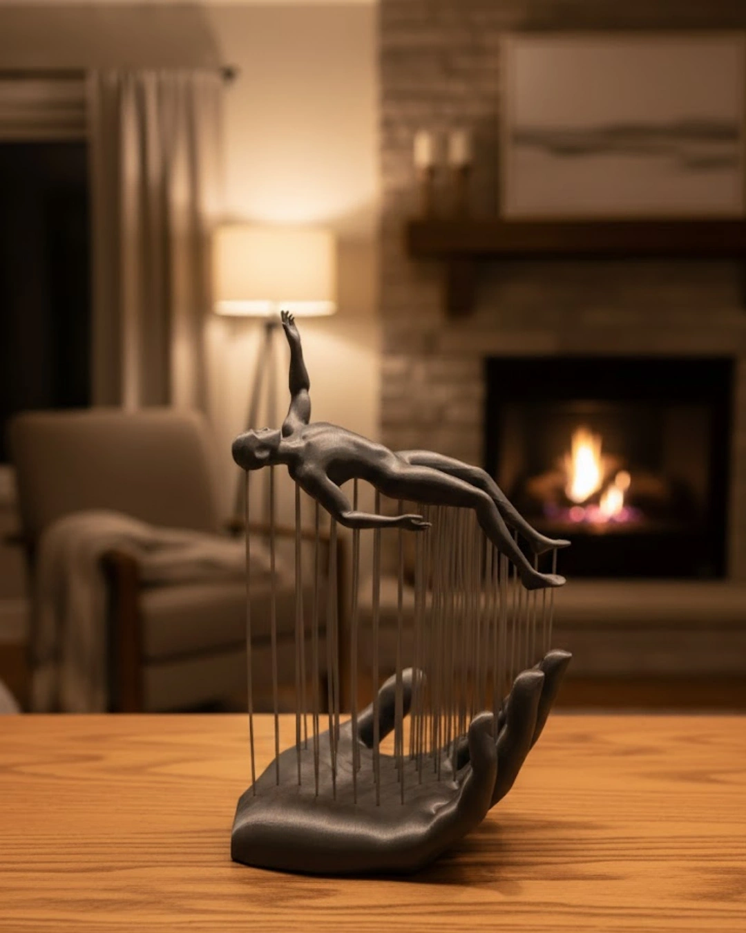Modern sanat anlayışını yansıtan 3D El Formlu İnsan Figürü Gri, dekorasyona sofistike bir dokunuş ekler. El formu üzerinde konumlanan insan figürü, soyut duruşu ile anlamlı ve estetik bir kompozisyon oluşturur. Gri rengi, mekânda sade ama güçlü bir etki yaratır. Kitaplık, raf, konsol veya masa üstünde sergilendiğinde bulunduğu alanın havasını değiştirir. Minimal ve modern ev dekorasyonu sevenler için ideal bir dekoratif biblodur.