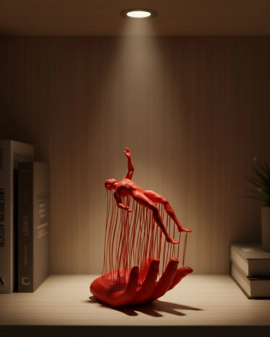 Sanatsal çizgileriyle öne çıkan 3D El Üzerinde İnsan Figürü Kırmızı, soyut tasarımıyla dekorasyona farklı bir bakış kazandırır. El formu üzerinde konumlanan insan figürü, denge ve özgürlük temasını modern bir yorumla yansıtır. Kırmızı rengi sayesinde mekânda güçlü bir vurgu oluşturur. Minimal, modern ve loft tarzı dekorasyonlarla uyum sağlar. Raf, sehpa, masa veya konsol üzerinde sergilendiğinde bulunduğu alanın havasını anında değiştirir. 12x18 cm ölçüsüyle kompakt bir yapıya sahiptir ve küçük alanlarda bile rahatlıkla kullanılabilir. Sanatsal detaylara önem verenler için ideal bir dekoratif objedir.