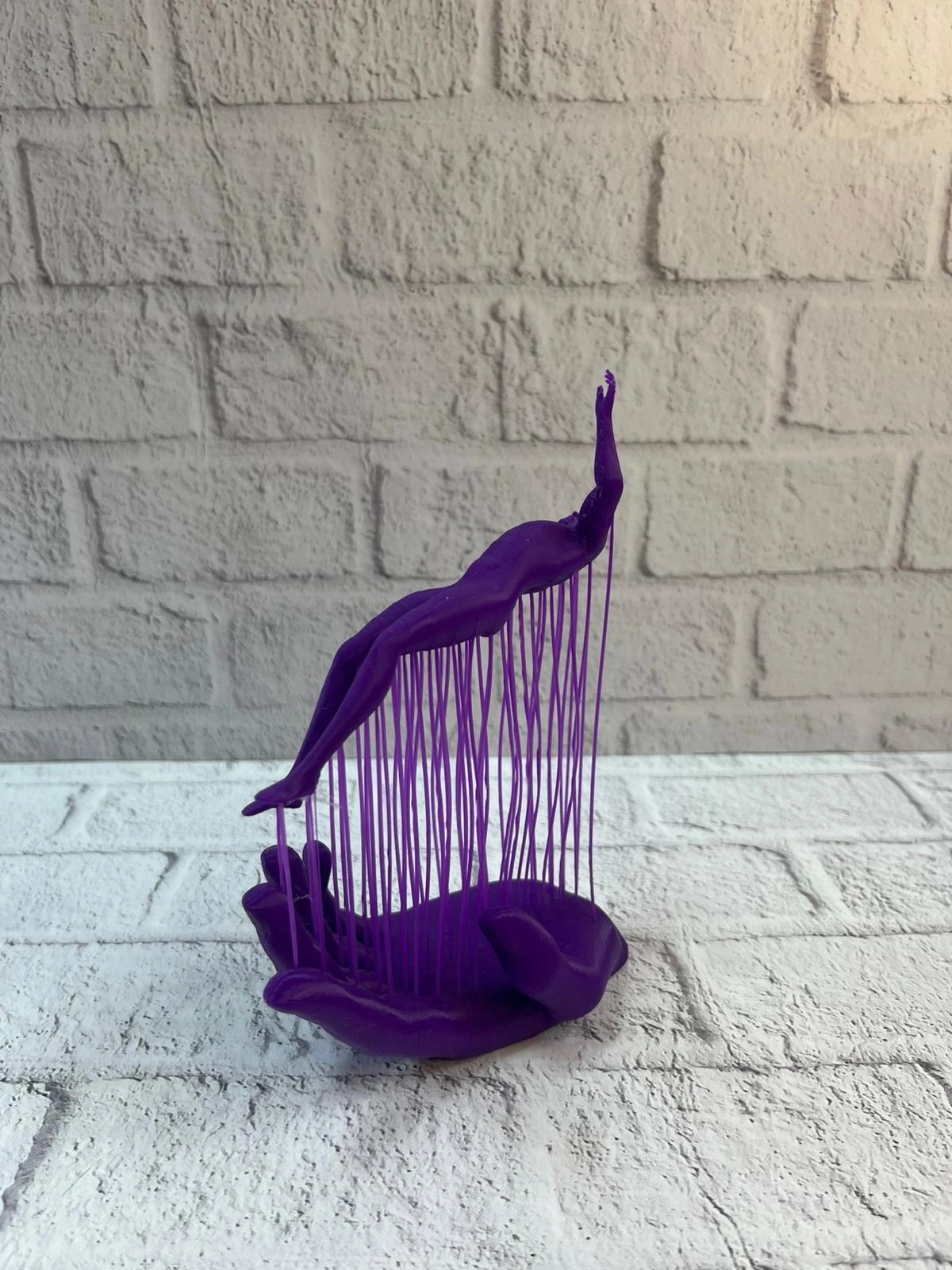 Sanatsal detaylarıyla öne çıkan 3D El Üzerinde İnsan Figürü Mor, dekorasyona derinlik ve anlam katar. El formu ve insan figürünün birleşimi, soyut bir anlatımla estetik bir denge sunar. İnce ip detayları tasarımı daha çarpıcı hale getirir. 12×18 cm ölçüsü sayesinde yer kaplamadan etkileyici bir görünüm sunar. Modern alanların yanı sıra klasik dekorasyonlarda da sanatsal bir kontrast oluşturur. Farklı ve özgün dekoratif objelerden hoşlananlar için ideal bir seçimdir.