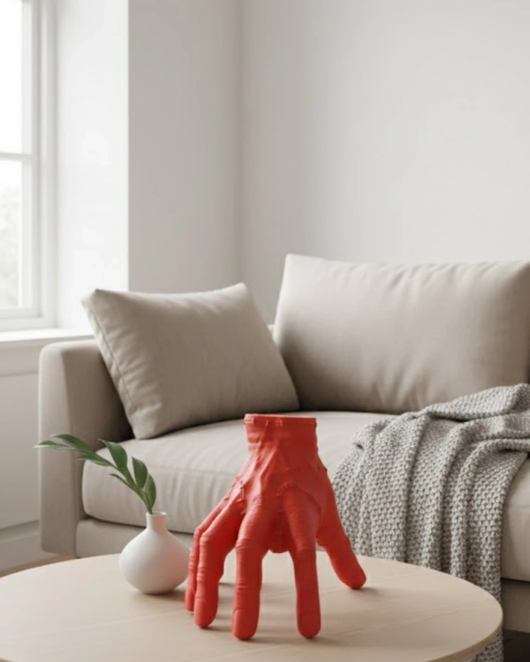 3D Kırmızı El Dekor 17x16 cm modeli, sıradan dekorasyon anlayışının dışına çıkmak isteyenler için tasarlanmış özgün bir tasarım objesidir. Güçlü formu ve canlı kırmızı rengi sayesinde bulunduğu ortamda hemen dikkat çeker. Kitaplık raflarında kitap aralarına yerleştirildiğinde sanatsal bir hava oluşturur. Şömine üzerinde kullanıldığında dramatik bir ambiyans yaratır. Çalışma masasında ise yaratıcı bir atmosfer sağlar. 17x16 cm ideal ölçüleri sayesinde hem kompakt hem de etkileyici bir boyuttadır. Aşırı yer kaplamaz ancak bulunduğu alanın karakterini tamamen değiştirir. Modern, gotik, Halloween temalı veya konsept dekorasyonlarda mükemmel bir tamamlayıcıdır. Ev hediyesi olarak da farklı ve unutulmaz bir seçenektir.