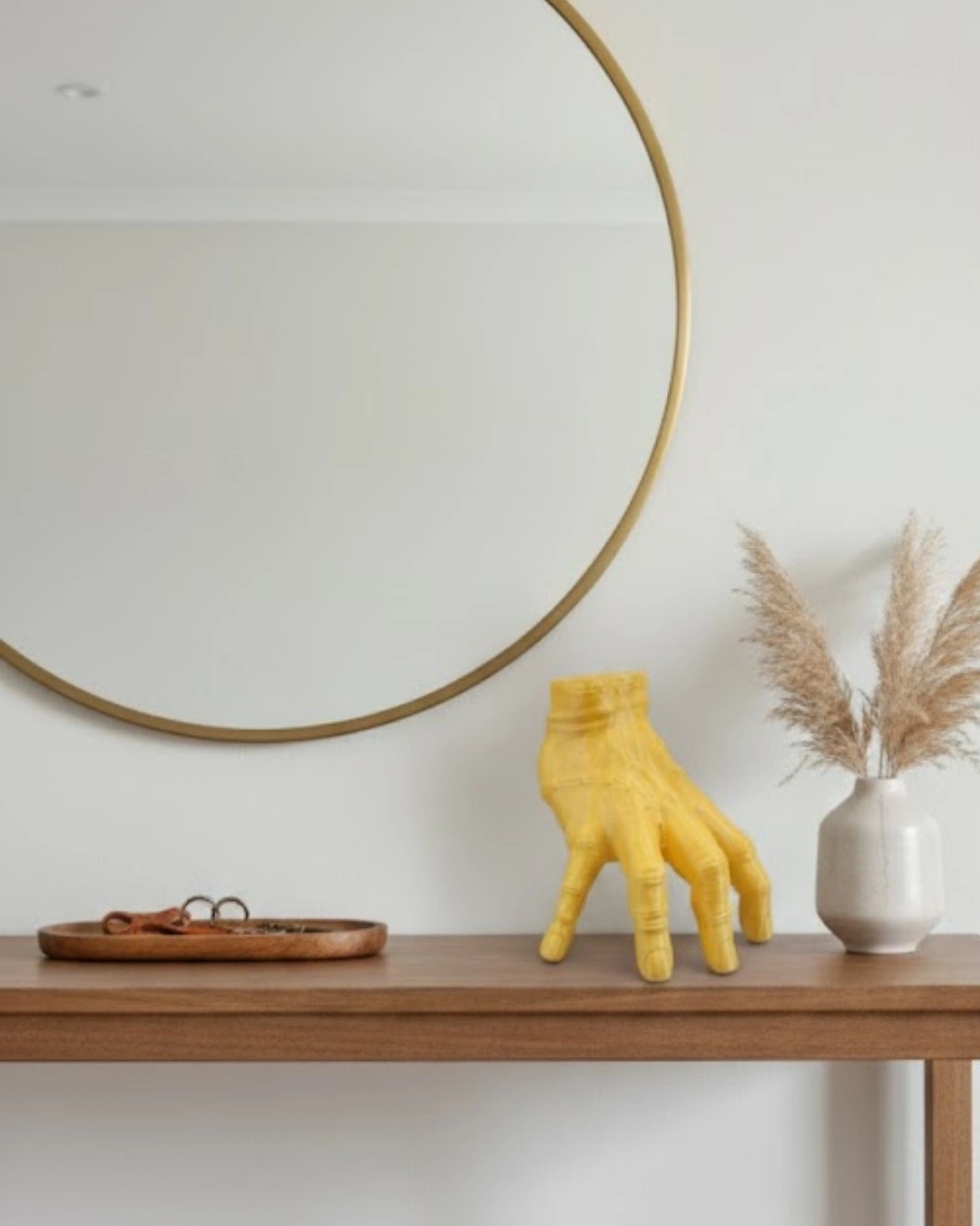 3D Modern Sarı El Biblo 17x16 cm, sıradan aksesuarların ötesine geçmek isteyenler için tasarlanmıştır. Sanatsal formu ve detaylı yüzey yapısı sayesinde bulunduğu ortamda sofistike bir vurgu oluşturur. Raf sistemlerinde, TV ünitesi üzerinde, çalışma masasında veya komodin üstünde rahatlıkla kullanılabilir. Kompakt yapısı sayesinde dar alanlarda bile rahatça konumlandırılabilir. Dayanıklı yapısı uzun süreli kullanım sağlar. Modern ve çağdaş dekorasyon anlayışına sahip kullanıcılar için estetik bir tamamlayıcıdır.