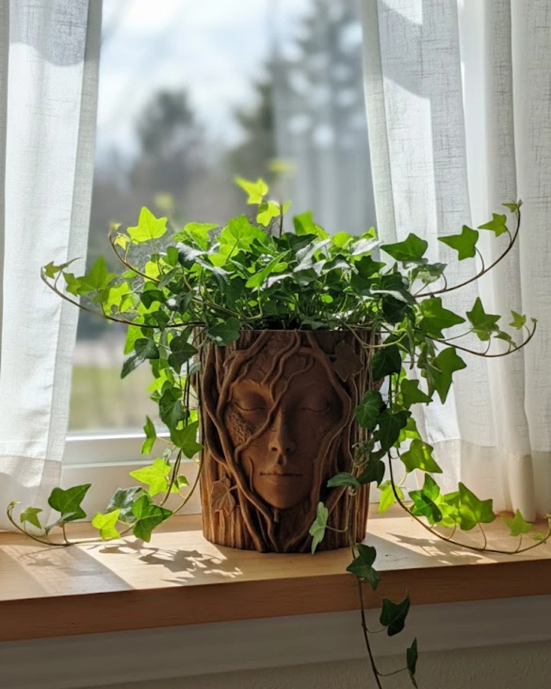 3D Sanatsal Ağaç Yüzlü Dekoratif Vazo Doğa Temalı Özel Tasarım Saksı
