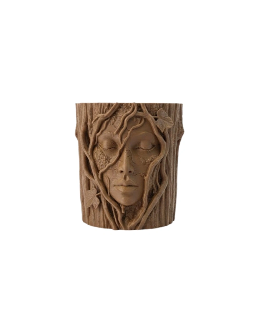 3D Sanatsal Ağaç Yüzlü Dekoratif Vazo Doğa Temalı Özel Tasarım Saksı