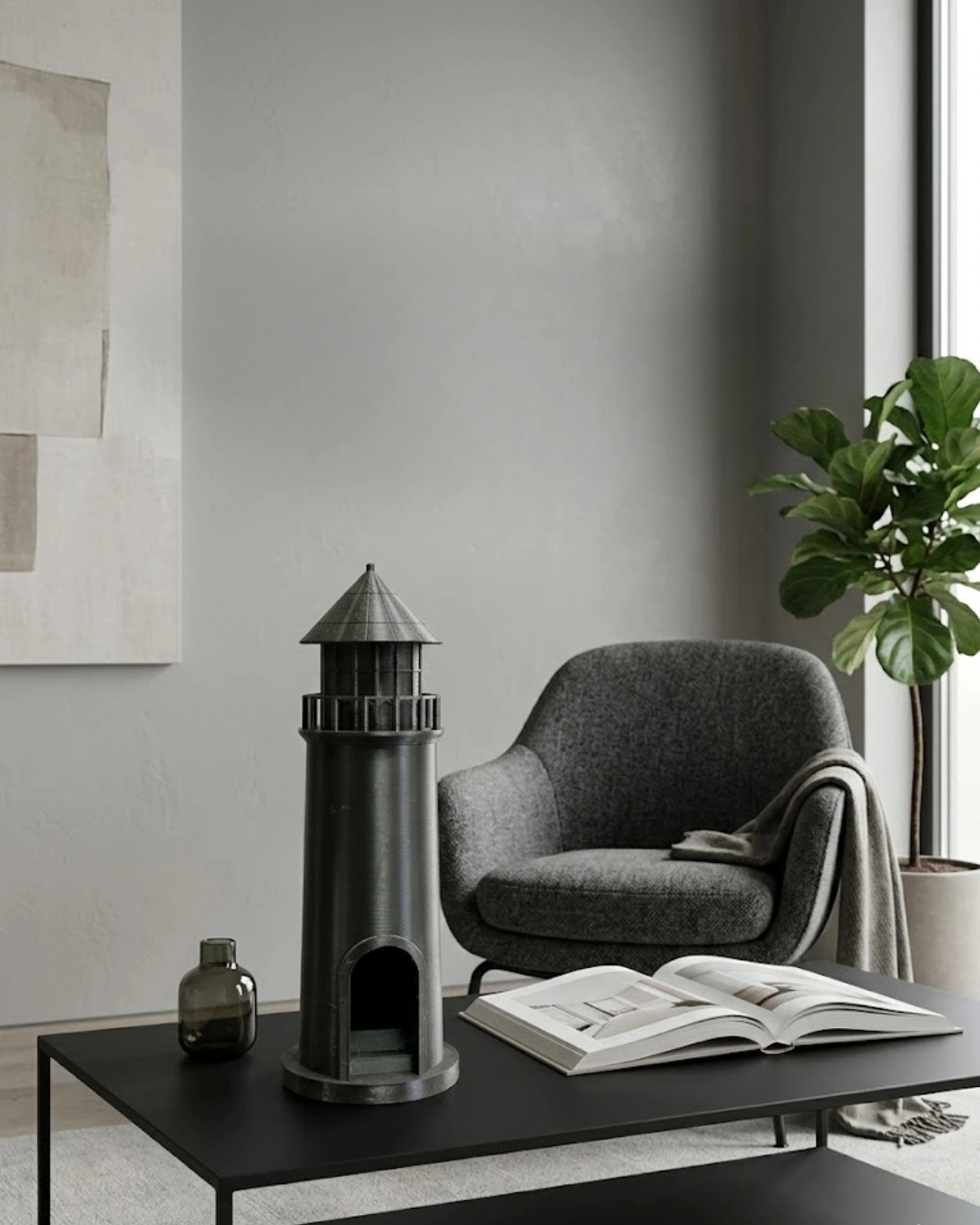 Modern ve karakterli bir dekoratif obje arayanlar için tasarlanan 3D siyah deniz feneri, yaşam alanlarına güçlü bir stil kazandırır. Üç boyutlu detaylı tasarımı sayesinde gerçekçi bir görünüm sunar ve bulunduğu ortamda dikkat çekici bir aksesuar haline gelir. Minimal siyah rengi, özellikle modern, endüstriyel ve maskülen dekorasyon stilleriyle mükemmel uyum sağlar. Salon sehpası, TV ünitesi, kitaplık rafı, çalışma masası veya antre dresuarı üzerinde rahatlıkla konumlandırılabilir. Kompakt yapısı sayesinde fazla yer kaplamaz ancak bulunduğu alanda güçlü bir dekoratif etki oluşturur. Dayanıklı malzemeden üretilmiş olup hafif yapısı sayesinde kolay taşınabilir. İç kısmına LED mum veya küçük ışık yerleştirilerek ambiyans aydınlatması olarak da kullanılabilir. Ev dekorasyonu, ofis aksesuarı veya hediyelik dekoratif obje olarak değerlendirebileceğiniz şık ve zamansız bir tasarımdır.