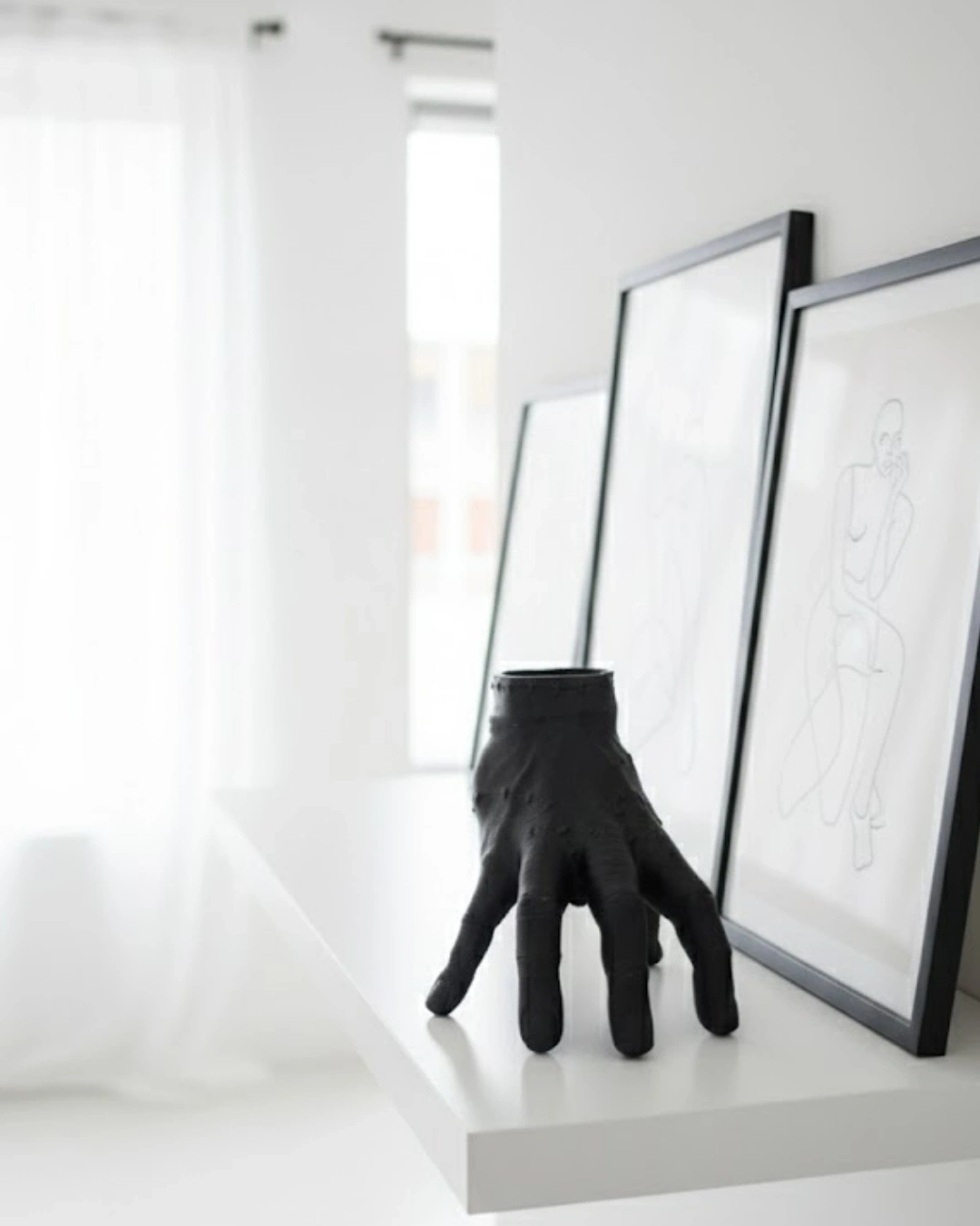 3D Siyah El Biblo 27x22 cm, dekorasyonda farklı ve özgün bir tarz yaratmak isteyenler için tasarlanmıştır. Büyük boy yapısı sayesinde mekâna derinlik ve güçlü bir karakter kazandırır. Siyahın sofistike duruşu ile birleşen heykelsi tasarım, yaşam alanlarında modern bir sanat eseri etkisi oluşturur. Konsol üzerinde tek başına sergilendiğinde bile etkileyici bir görünüm sunar. Minimal dekorasyonlarda kontrast oluşturmak için idealdir. Koyu tonlu alanlarda ise bütünleyici bir tamamlayıcı görevi görür. Ev ve ofis dekorasyonunda iddialı bir görünüm arayanlar için mükemmel bir seçenektir.