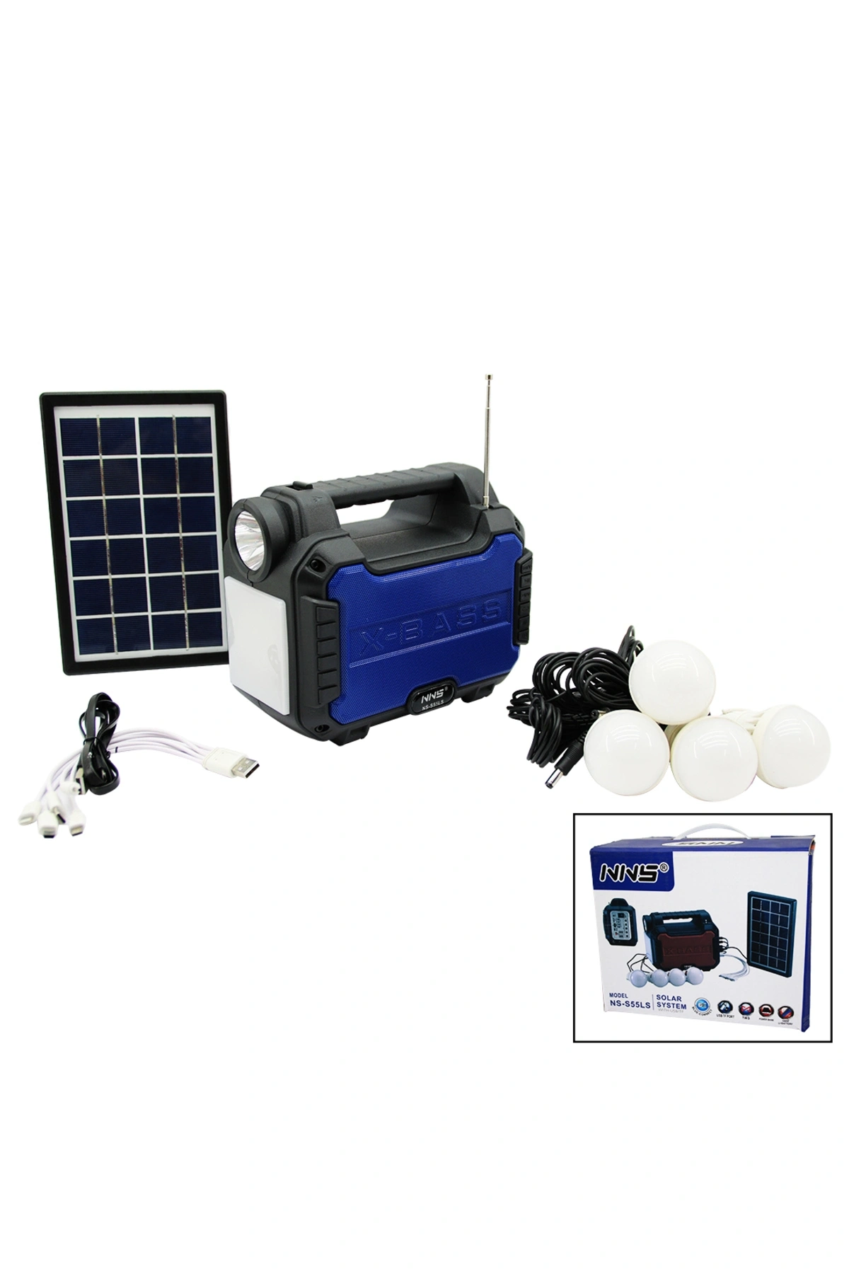 3IN1 - SOLAR 2İN1 SABİT EL FENERİ - RADYO - MP3 BLUETOOTH - USB/ TF PORT - 4 PARÇA AMPUL KABLOLU -