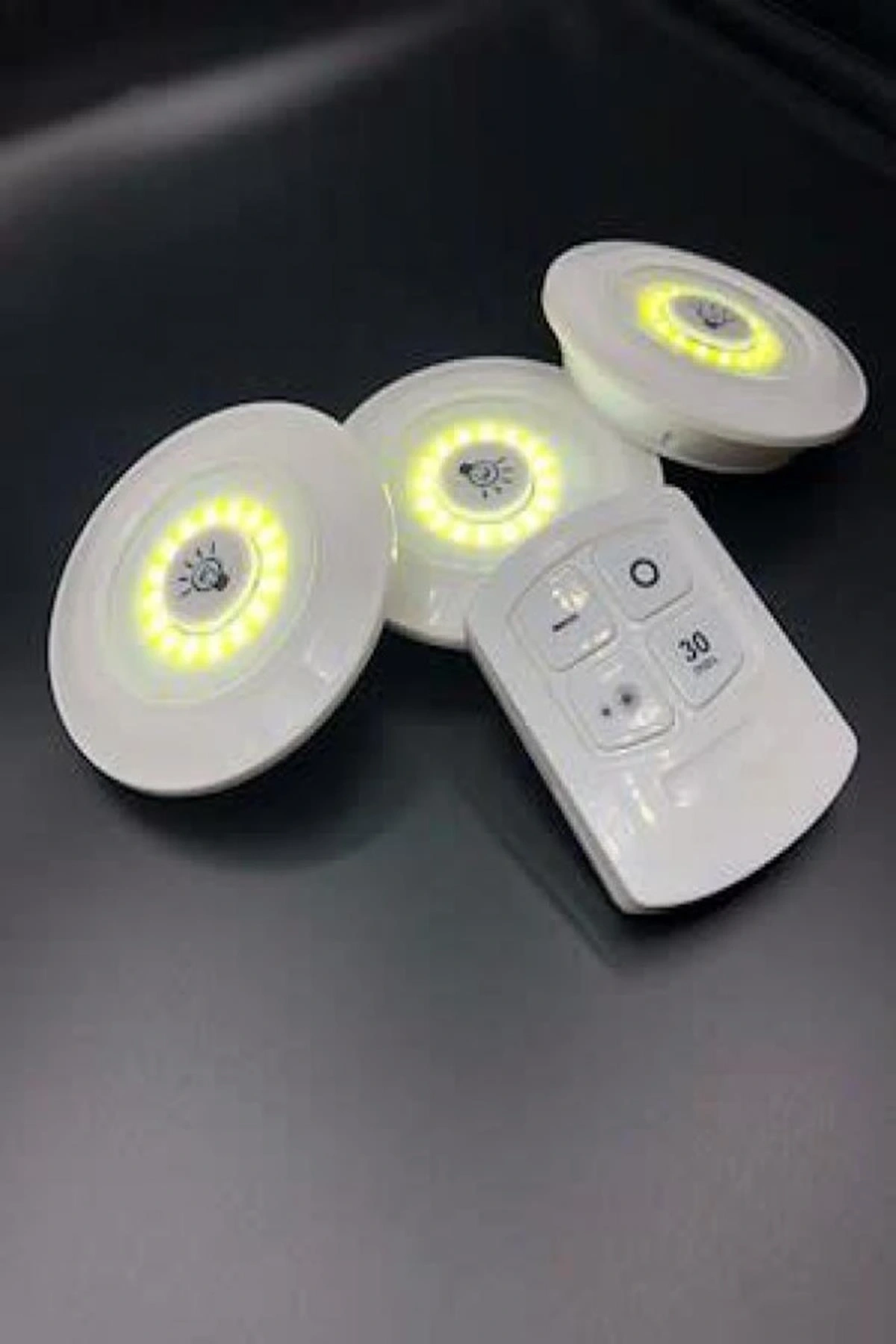 3lü Uzaktan Kumandalı Yapışkanlı Kablosuz Led Spot Lambalar