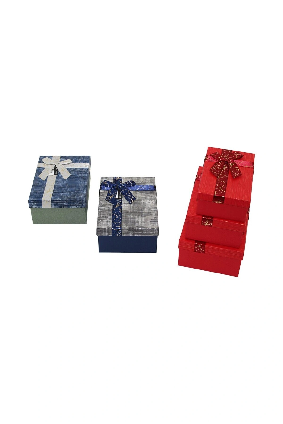 3PCS D.DÖRTGEN PARLAK MİX RENKLİ - KABARTMA DESEN KARTON HEDİYE KUTUSU KURDELALI 22.5X15.5-20.5X13.5