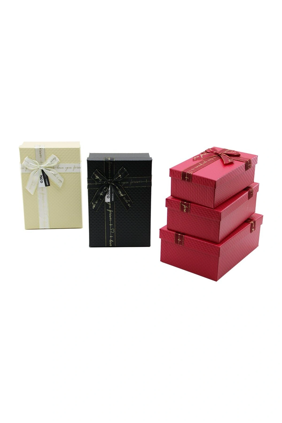 3PCS D.DÖRTGEN MAT MİX RENKLİ - KABARTMA DESEN KARTON HEDİYE KUTUSU KURDELALI 22.5X15.5-20.5X13.5-18
