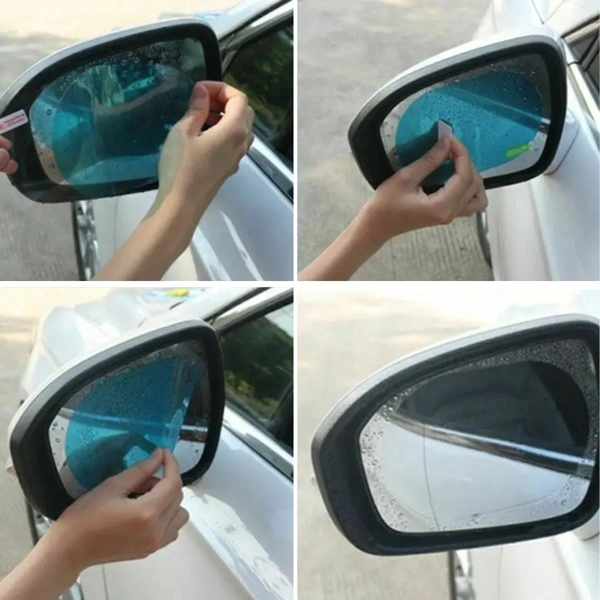 Araç Ayna Yağmur Kaydırıcı ve Cam Buğu Önleyici Film Seti, araç yan aynalarınızı ve camlarınızı su, buğu ve kir oluşumuna karşı koruyarak daha güvenli bir sürüş deneyimi sunar.