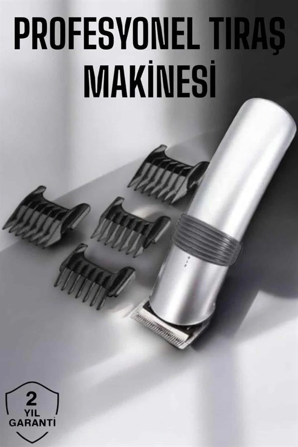 Bu profesyonel şarjlı saç ve sakal kesme tıraş makinesi, kişisel bakımınızı pratik ve rahat bir şekilde gerçekleştirmenizi sağlar. Hem evde hem de kuaför salonlarında kullanılabilen bu cihaz, yüksek performanslı motoru ve dayanıklı paslanmaz çelik bıçakları ile mükemmel sonuçlar sunar. İster kısa sakal modelleri oluşturun, ister saçınızı şekillendirin, bu cihaz her kullanımda kusursuz bir deneyim sunar.Pratik ve Hızlı Kullanım:Saç ve sakal kesme işlemlerini hızlandıran bu cihaz, zaman kısıtlamalarınızda dahi rahatlıkla kullanabileceğiniz bir üründür. Çeşitli başlıklarla, saç kesimi, sakal şekillendirme, bıyık düzeltme gibi tüm işlemleri kolayca yapabilirsiniz. 5 farklı kesim tarağı ile her tarzı yakalayabilir ve dilediğiniz uzunluğu ayarlayabilirsiniz. Şarj edilebilir özelliği sayesinde kablosuz kullanım imkanı sunar, bu da cihazın daha pratik ve özgürce kullanılmasını sağlar.Ergonomik Tasarım ve Konfor:Cihazın ergonomik tasarımı, uzun süreli kullanımlarda bile elinize rahatça oturur ve kaymaz. Tıraş sırasında cihazın kolayca kontrol edilebilmesi, rahat bir kullanım sağlar. Ayrıca, makinenin sessiz çalışması, tıraş işlemi sırasında sizi rahatsız etmez. Güç düğmesi, başlık değiştirme ve kullanım kolaylığı ile en zahmetsiz tıraş deneyimini sunar. Kablosuz kullanım imkanı sayesinde, istediğiniz yerde rahatça tıraş olabilirsiniz.Uzun Ömürlü Performans ve Dayanıklılık:Paslanmaz çelik bıçaklar, her tür saç ve sakalı çekmeden, asılmadan keser. Güçlü motoru, yoğun sakalların kesilmesinde bile mükemmel performans sergiler. Yüksek kapasiteye sahip batarya, hızlı şarj olma süresi ile her zaman verimli çalışır ve 1 saatlik şarj ile 60 dakika boyunca kullanılabilir. Bu, cihazın her kullanımda yüksek performans sergilemesini sağlar ve tıraş sırasında size kesintisiz bir deneyim sunar.Paket İçeriği: 1 Adet Şarjlı Tıraş Makinesi 5 Adet Kesim Tarağı (Farklı uzunluk seçenekleri) 1 Adet Temizleme Fırçası 1 Adet Yağ Şişesi 1 Adet Şarj Adaptörü