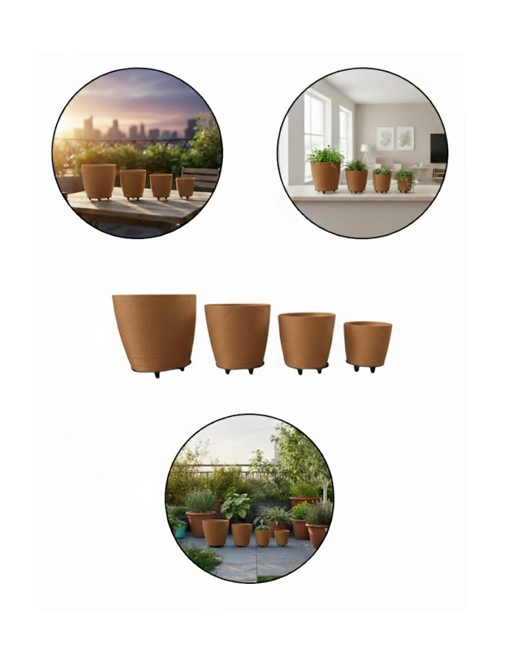 Doğal ve modern çizgilerin uyumunu yansıtan 4’lü 3D Kahverengi Ayaklı Saksı Takımı, dekorasyonda sıcak bir atmosfer oluşturmak isteyenler için ideal bir seçimdir. 3D dokulu yüzeyi ürüne premium bir hava katar. Kahverengi tonları mekâna dinginlik ve doğallık hissi verir. Ayaklı tasarım modern bir dokunuş sunar. Farklı boy seçenekleri sayesinde dengeli bir görünüm sağlar.