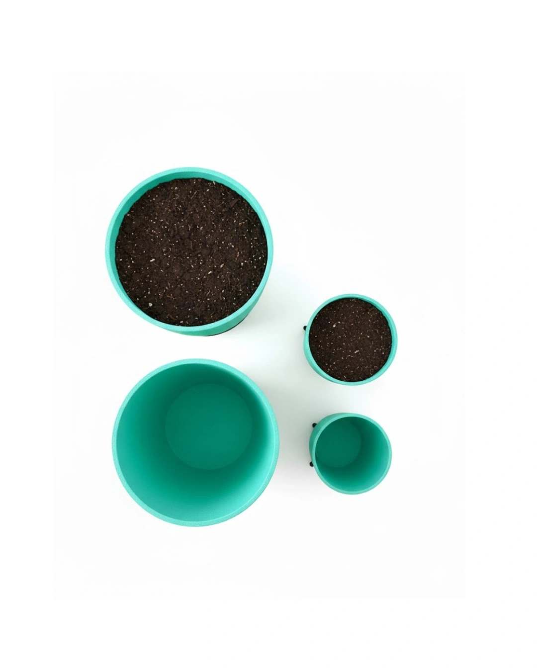 4’lü 3D Modern Yeşil Vazo Seti Dekoratif Ayaklı Saksı Takımı