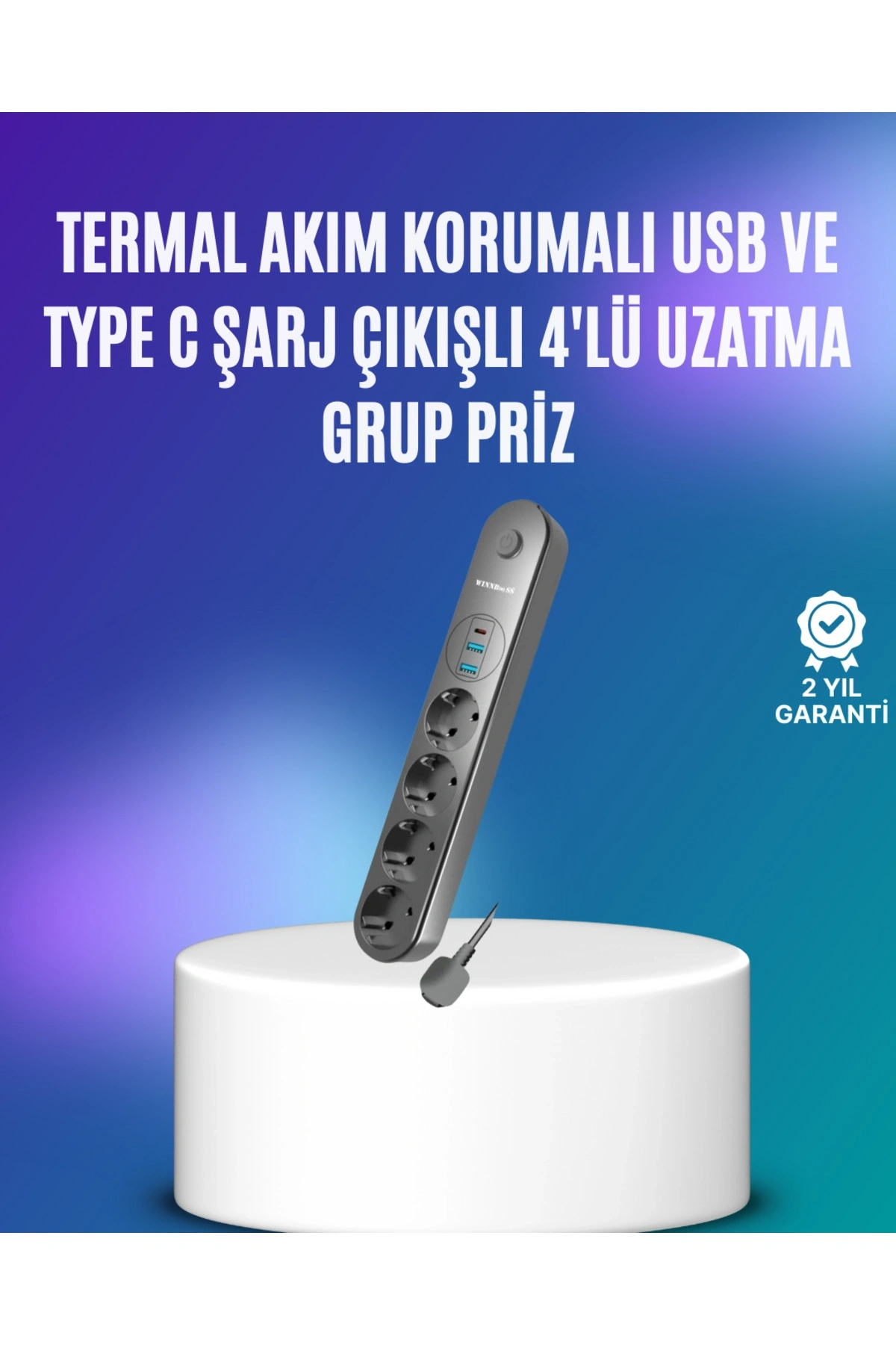 Akım korumalı 4’lü çoklu priz, aynı anda birden fazla cihazı güvenle kullanmak isteyenler için geliştirilmiştir.; 2 USB ve 1 Type-C bağlantı noktası, özellikle mobil cihaz kullanıcıları için büyük kolaylık sağlar.; Tek bir priz üzerinden hem klasik fişli cihazlar hem de USB destekli ürünler rahatlıkla kullanılabilir.; 250V giriş voltajı ve 10A çalışma değeri ile güçlü bir sunan ürün, maksimum 2500W güç kapasitesine sahiptir.; Smart akım dengeleme özelliği, her cihaza ihtiyacı kadar enerji aktararak aşırı yüklenmenin önüne geçer.; Bu sayede cihazlarınız daha stabil ve güvenli çalışır.; Termal ve kısa devre koruma sistemi, ani akım değişimlerinde prizleri devre dışı bırakarak elektronik eşyalarınızı korur.; Yüksek ısıya dayanıklı PC-ABC kasa, güvenli ve uzun ömürlü kullanım sağlar.; Priz yuvaları 20.000 kez tak-çıkar testinden geçmiş olup, güç anahtarı 10.000 aç-kapa ömrüne sahiptir.; 2 metre uzunluğundaki kablosu, farklı kullanım alanlarında esneklik sağlar.; Led indikatörlü anahtar, prizlerin aktif durumunu kolayca görmenizi sağlar.; Siyah renkli modern tasarımı, her ortama uyum sağlar.; Ev, ofis ve çalışma alanlarında televizyon, bilgisayar, modem, yazıcı ve benzeri tüm elektronik cihazlar için güvenilir bir enerji çözümüdür.