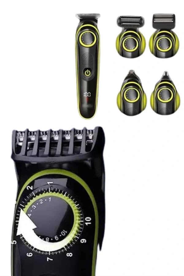 Bu şarjlı tıraş makinesi, hem işlevselliği hem de kullanıcı dostu tasarımıyla günlük bakım rutininizi kolaylaştırır. 5 farklı başlıkla donatılmış bu çok yönlü cihaz, saç ve sakal kesiminden burun-kulak kılı temizliğine, detaylı yüz hatları şekillendirmesinden vücut bakımına kadar geniş bir kullanım yelpazesi sunar. Güçlü ve sessiz çalışan motoru, kesintisiz performans sağlar; paslanmaz çelik bıçakları ise ciltle dost ve uzun ömürlü olacak şekilde tasarlanmıştır. Kablosuz kullanımı sayesinde hareket özgürlüğü sunar; tam şarjla uzun süreli kullanım imkanı tanırken, LED göstergesiyle batarya seviyesini kolayca takip edebilirsiniz. Ayarlanabilir tarak başlıkları ile farklı kesim uzunluklarına ulaşmak son derece pratiktir. Ergonomik yapısı rahat bir tutuş sağlarken, modern ve şık görünümü banyonuza estetik bir dokunuş katar. Suya dayanıklı başlıkları sayesinde hijyenik bir kullanım sunar ve temizlik işlemleri zahmetsizce yapılabilir. Bu çok amaçlı bakım seti, kişisel bakımını ön planda tutan herkes için ideal bir çözümdür.