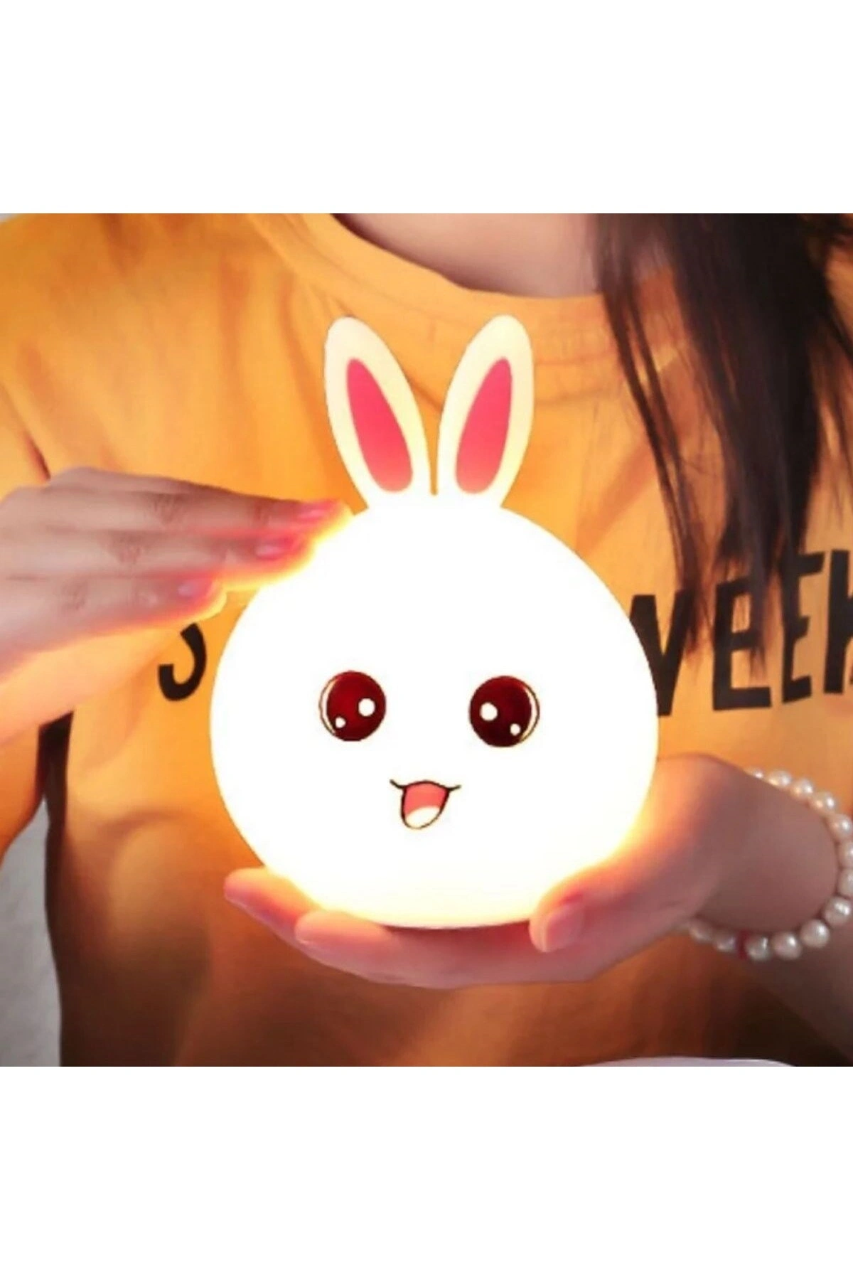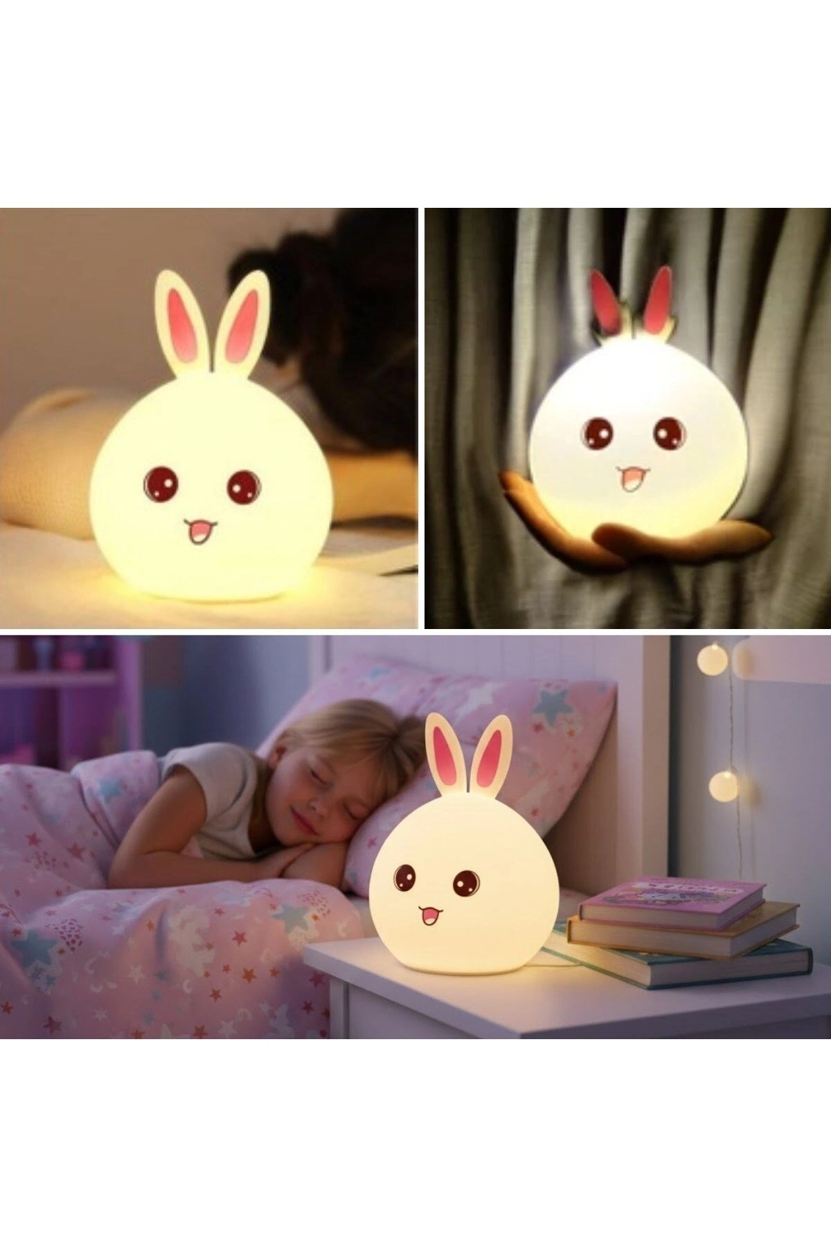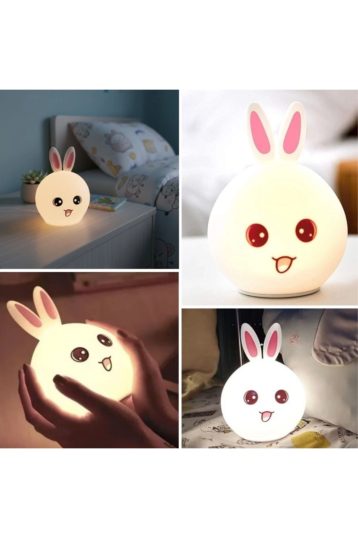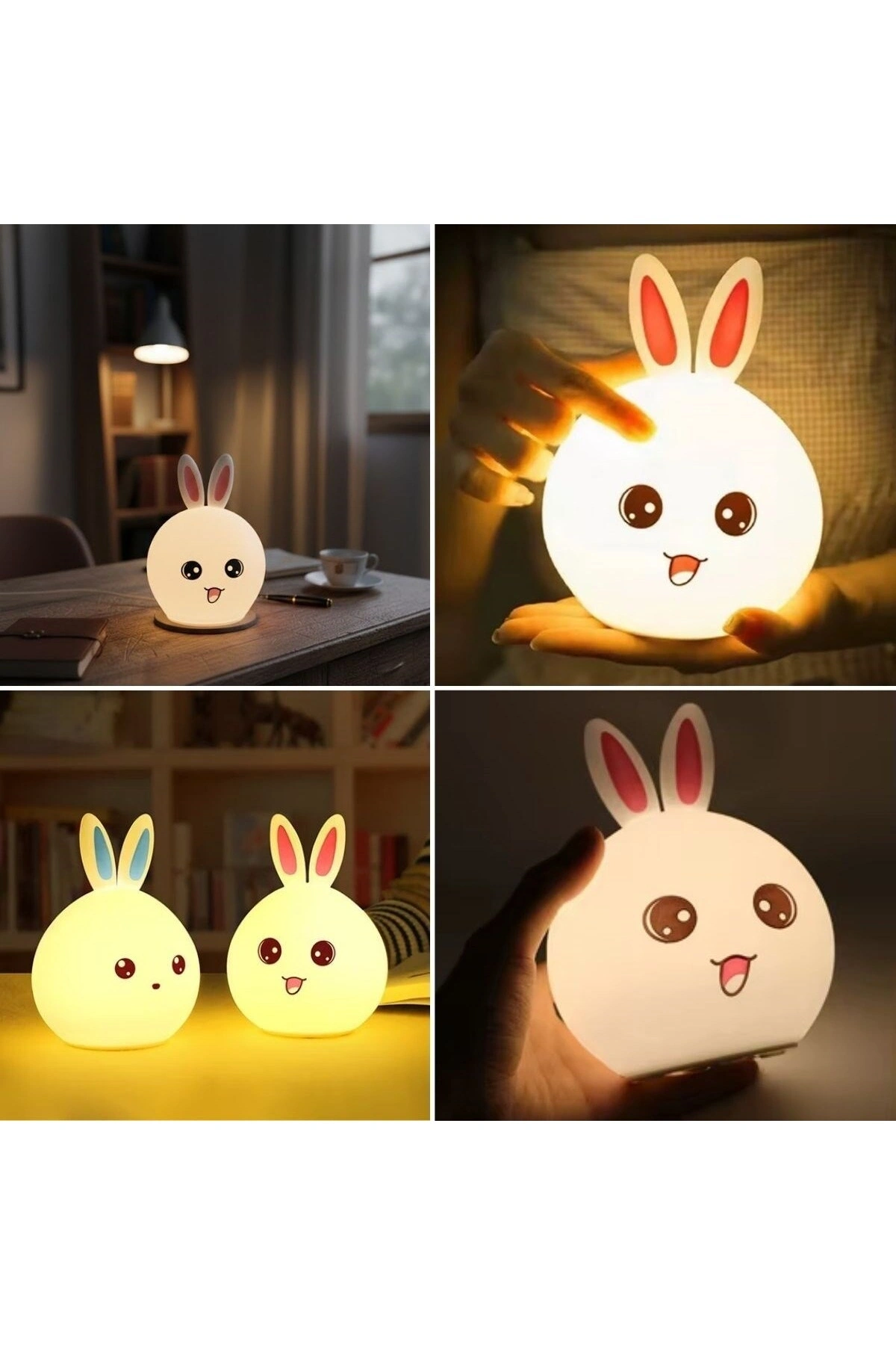 Tavşan Figürlü Pofuduk LED Gece Lambası – Yumuşak Dokulu Masaüstü Aydınlatma, Çocuk Odası ve Dekoratif Şarjlı Ortam Işığı Tavşan Figürlü Pofuduk LED Gece Lambası, sevimli tavşan tasarımı ve yumuşak dokulu gövdesiyle yaşam alanlarınıza sıcak ve huzurlu bir atmosfer kazandırır.; Göz yormayan LED ışığı sayesinde çocuk odaları, bebek odaları, yatak odaları ve masaüstleri için ideal bir gece aydınlatması sunar.; Pofuduk ve esnek yapısı, ürünü hem güvenli hem de konforlu hale getirir.; Şarjlı tasarımı sayesinde kablo karmaşası olmadan dilediğiniz her alanda rahatlıkla kullanılabilir.; Yumuşak ortam ışığı, gece kullanımlarında rahatlatıcı bir ambiyans oluştururken çocukların uykuya geçişini kolaylaştırmaya yardımcı olur.; Minimal ve dekoratif görünümü sayesinde yalnızca çocuk odalarında değil; salon, çalışma alanı ve ofislerde de şık bir tamamlayıcı olarak tercih edilebilir.; Hem kendiniz hem de sevdikleriniz için estetik, kullanışlı ve sevimli bir hediyelik alternatiftir.; Öne Çıkan Özellikler ???? Tavşan figürlü sevimli tasarım ???? Pofuduk ve yumuşak dokulu gövde ???? Göz yormayan LED aydınlatma ???? Şarjlı kullanım, kablosuz pratiklik ???? Masaüstü, komodin ve çocuk odasına uygun ???? Dekoratif ve hediyelik kullanım Kullanım Alanları Çocuk & bebek odası gece lambası Yatak odası ve komodin aydınlatması Masaüstü ve raf dekoru Ortam ve ambiyans ışığı