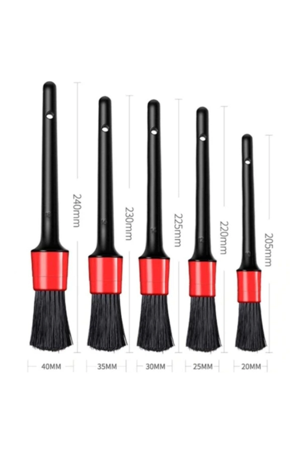 5’li Çok Amaçlı Araç İçi ve Dış Yüzey Temizlik & Detaylandırma Fırça Seti Aracınızın her köşesini titizlikle temizlemek artık çok daha kolay! 5’li fırça seti, farklı boyutlardaki fırçaları sayesinde araç içi ve dış yüzeylerde ulaşılması zor alanlara bile kolayca erişmenizi sağlar.; Toz, kir ve kalıntıları etkili şekilde temizleyerek aracınıza ilk günkü görünümünü kazandırır.; Yumuşak ama dayanıklı kılları, yüzeyleri çizmeyecek şekilde tasarlanmıştır.; Gösterge paneli, havalandırma ızgaraları, jantlar, kapı içleri, amblemler ve motor bölmesi gibi detaylı temizlik gerektiren her noktada güvenle kullanabilirsiniz.; Öne Çıkan Özellikler: 5 farklı boyda fırça ile çok yönlü kullanım Araç içi ve dış yüzeyler için ideal tasarım Yüzeyleri çizmeyen, dayanıklı ve yumuşak kıllar Ergonomik sap ile rahat tutuş ve kolay kullanım Havalandırma ızgaraları, jantlar, kapı içleri, amblemler, motor bölmesi ve daha fazlası için uygun