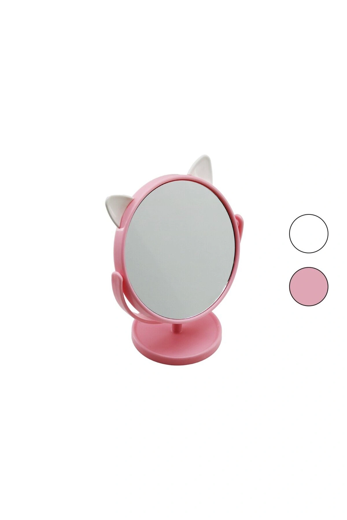 6 İNÇ - 15CM - YUVARLAK KULAKLI RENKLİ PLASTİK MAKYAJ AYNASI AYAKLI