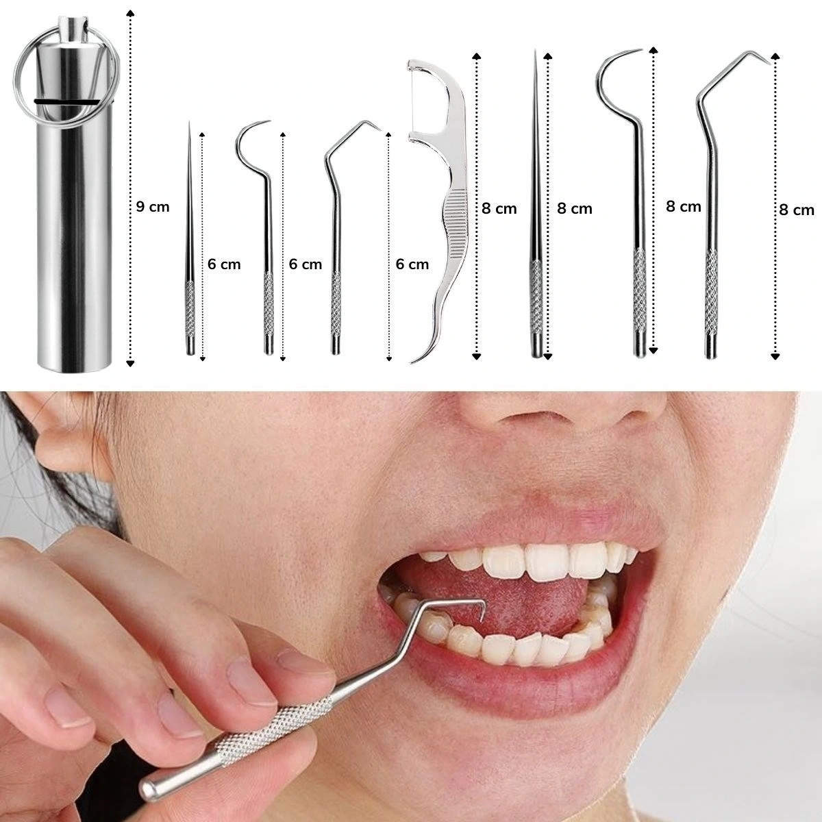 Kapsamlı temizlikten sonra tekrar tekrar kullanılabilir 8 Parça Paslanmaz Çelik Ağız Diş Tartar Sökücü Temizlik Bakım Seti.