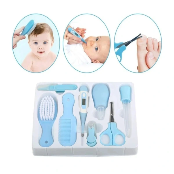 8 PARÇA BEBEK BAKIM SETİ MAVİ RENKÜrün Özellikleri8 Parça Bebek Bakım Seti, bebeklerin temel kişisel bakım ihtiyaçlarını karşılamak için özel olarak tasarlanmış bir settir. Günlük kullanımda ebeveynlerin işini kolaylaştırır. Set içinde yer alan tırnak makası, bebeklerin hassas tırnakları için güvenli ve ergonomik bir yapıda tasarlanmıştır. Makas uçları yuvarlatılmıştır, bu sayede bebekler için güvenli kesim sağlar. Cımbız ise bebek kulakları ve burun gibi hassas bölgelerde hijyen sağlamak amacıyla kullanılır. Burun aspiratörü, bebeklerin burunlarını nazikçe temizlemek için idealdir. Fırça, yumuşak kılları ile bebek saç ve saç derisine zarar vermezken, tarak düğümsüz ve nazik bir tarama deneyimi sunar. Termometre, vücut sıcaklığını dijital olarak ölçer. Damla şırıngası (damlalık), ilaç veya sıvı takviyelerini hassas şekilde vermek için kullanılır. Bu set, yenidoğan ve küçük bebeklerin kişisel bakımlarını düzenli şekilde yapabilmek için ideal bir çözümdür. Ayrıca, seyahatlerde veya günlük kullanımda pratiklik sağlar ve genellikle taşıma çantasıyla birlikte gelir.Paket İçeriği1 adet 8 Parça Bebek Bakım Seti Mavi Renk