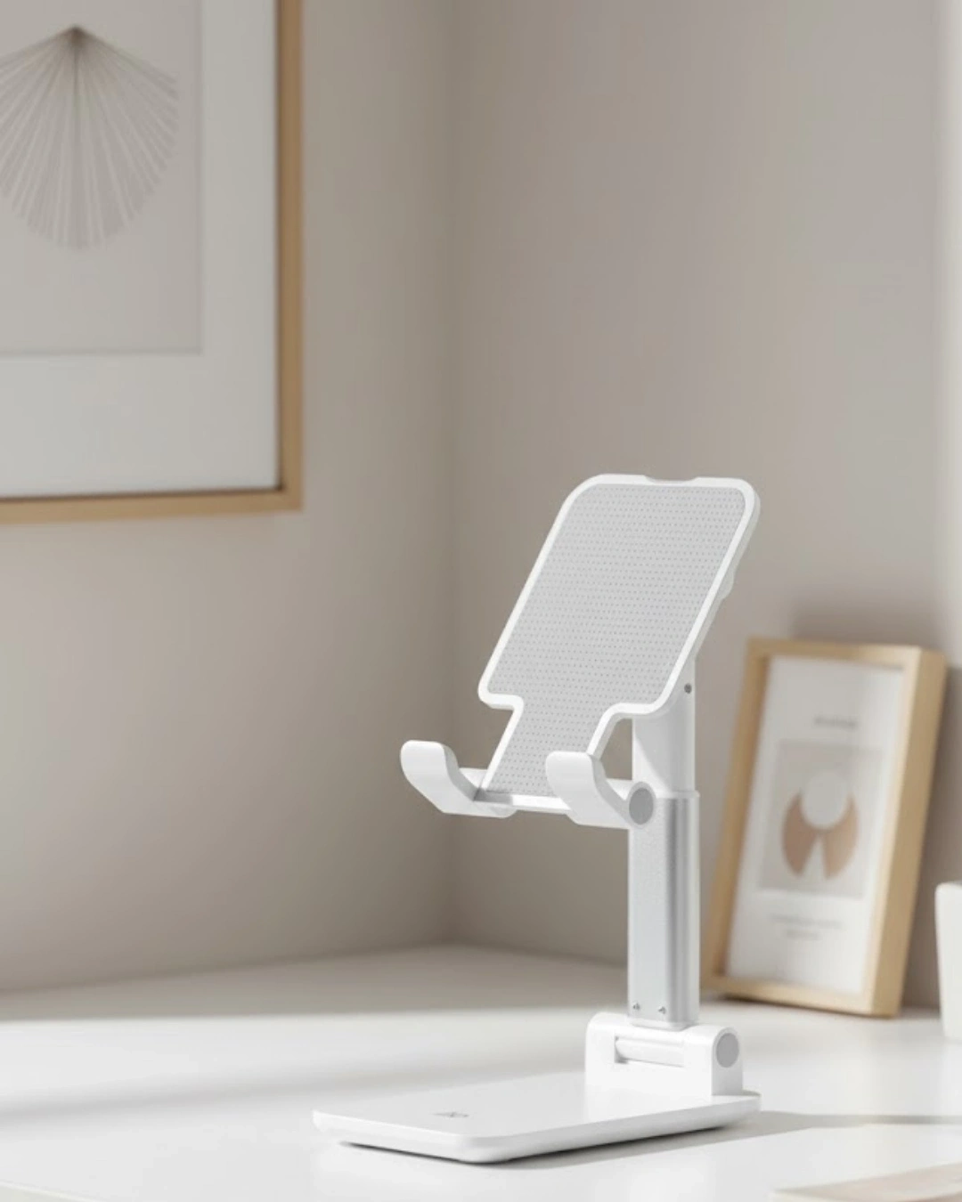 Katlanabilir masaüstü telefon tutucu, modern yaşamın gerektirdiği konfor ve pratikliği bir araya getiren ergonomik bir üründür. Telefonu uzun süre elde tutmadan kullanmak isteyenler için ideal olan bu stand, çalışma masasında düzenli bir alan oluşturmayı amaçlar. Ayarlanabilir yükseklik ve açı özellikleri sayesinde ekranı göz hizasına getirerek daha sağlıklı bir kullanım deneyimi sunar. ABS plastik ve silikon malzeme kombinasyonu, ürünün dayanıklılığını artırırken hafif yapısını da korur. Alt yüzeyde ve telefon temas noktalarında yer alan kaymaz silikon kaplama, telefonun sabit durmasını sağlar. Çelik levha desteği ise standın stabilitesini artırarak güvenli kullanım sunar. Maksimum 350 gram taşıma kapasitesi, günümüzde kullanılan akıllı telefonlar için yeterli destek sağlar. Katlanabilir tasarımı sayesinde ürün, kullanılmadığı zamanlarda az yer kaplar. Çanta içinde taşımaya uygun boyutları, ürünü seyahatlerde ve ofis dışında kullanım için avantajlı hale getirir. 4.7 ile 6.7 inç arası ekran boyutuna sahip tüm akıllı telefonlarla uyumlu olması, evrensel bir kullanım imkânı sunar. Evde video izlerken, mutfakta tarif takip ederken, ofiste görüntülü toplantılara katılırken veya ders çalışırken rahatlıkla kullanılabilir. Ergonomik yapısı sayesinde uzun süreli kullanımlarda boyun ve omuz bölgesindeki yükü azaltmaya yardımcı olur. Sade beyaz rengi, masaüstünde temiz ve düzenli bir görünüm oluşturur.