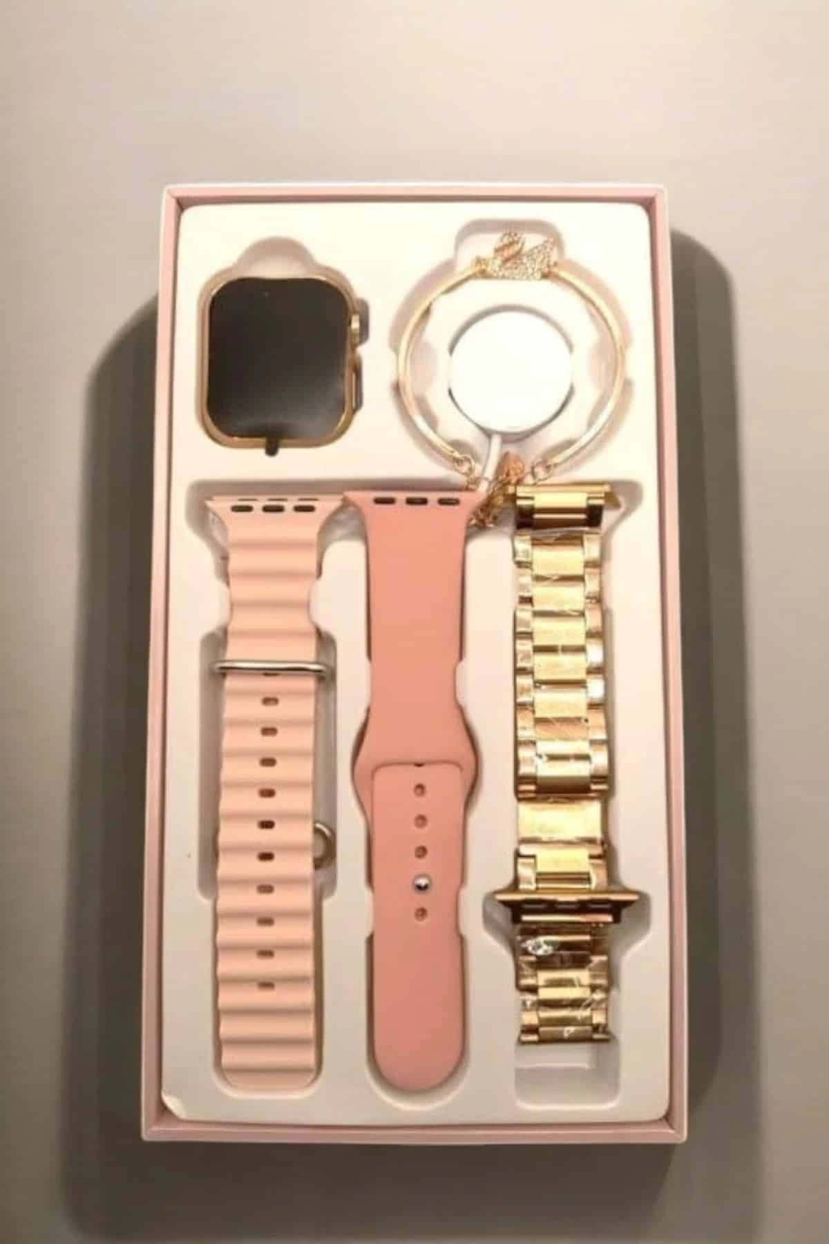Şıklığı ve işlevselliği bir araya getiren bu akıllı saat, aksesuar severler için üç farklı kordon seçeneği ve zarif bir flamingo Bileklik ve yüzük  hediyesiyle birlikte gelir. Kordon seçenekleri arasında çelik metal, ocean tasarım ve silikon malzeme yer alır; böylece saatinizi günlük tarzınıza veya etkinliğinize göre uyarlayabilirsiniz. Hediye kolye, şık bir dokunuş ekler ve bu ürünü sadece teknolojik bir cihaz değil, aynı zamanda zarif bir aksesuar haline getirir. Saatin kapsamlı özellikleri ve kullanıcıya sunduğu hediyeler, hem fonksiyonel hem de estetik bir deneyim sunar.