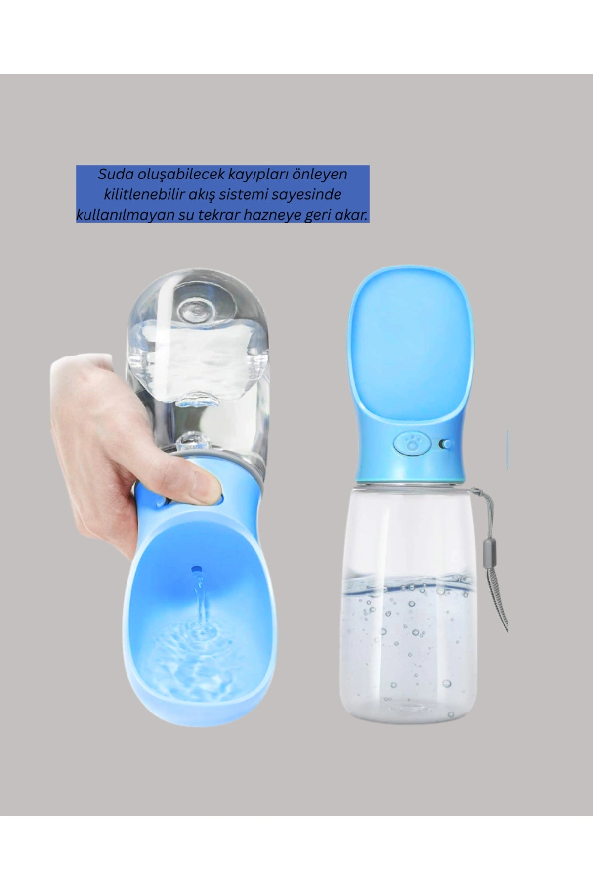 Evcil hayvanların temiz su tüketimi sağlığı için son derece önemlidir.; Bu taşınabilir su şişesi, gıda sınıfı yüksek kalite plastikten üretilmiş olup BPA içermez.; Böylece suyun yapısını ve tadını korur, koku bırakmaz.; Ürünün tasarımında kullanılan pürüzsüz yüzey, hijyenik bir kullanım sağlar ve temizlemeyi son derece kolay hale getirir.; Tek elle kullanılan su akış düğmesi sayesinde evcil dostunuza birkaç saniye içinde taze su verebilirsiniz.; Düğme bırakıldığında su akışı durur ve boşa su akması engellenir.; Kullanılmayan su isterse hazneye geri döndürülebilir.; Bu özellik hem su tasarrufu sağlar hem de pratiklik sunar.; Sızdırmaz kilit mekanizması, yürüyüş veya seyahat sırasında çantaya koyduğunuzda su sızıntısı riskini ortadan kaldırır.; Dayanıklı gövdesi darbelere karşı oldukça dirençlidir, bu da uzun ömürlü bir kullanım sağlar.; Kedi, köpek gibi tüm küçük/orta ırklar için uygundur.; Şeffaf alt hazne su seviyesini takip etmenizi kolaylaştırırken, üst kap açık ağız formuyla hayvanların rahat ve doğal şekilde içmesine yardımcı olur.; Günlük yürüyüşler, park gezileri, tatiller ve araç yolculukları için ideal bir üründür.