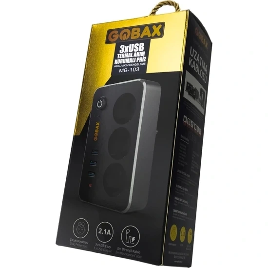 Akım Korumalı Akıllı Priz,termal Akım Korumalı 3x Ledli Usb, 3x Priz 2 M Uzatmalı Çocuk KorumalıGobax Akım Korumalı Akıllı Priz,termal Akım Korumalı 3x Ledli Usb, 3x Priz 2 M Uzatmalı Çocuk KorumalıTERMAL AKIM KORUMALI AKILLI PRİZÜRÜN ÖZELLİKLERİ TERMAL AKIM KORUMALI AKILLI PRİZDÜĞMESİ SAYESİNDE KULLANILMADIĞI ZAMAN KAPALI TUTABİLİRSİNİZ3 ADET USB BAĞLANTISI MEVCUTTURUSB GİRİŞLERİ SAYESİNDE ADAPTÖR KULLANMAK ZORUNDA KALMAYACAKSINIZ3 ADET PRİZ GİRİŞİ MEVCUTTUR2 METRE KABLO UZUNLUĞUNA SAHİPTİRYÜKSEK ISIYA DAYANIKLI MALZEMEDEN ÜRETİLİŞTİRÇOCUK KORUMASI SAYESİNDE GÜVENLKE KULLANABİLİRSİNİZ20.000 KEZ TAK-ÇALIŞITIR10.000 KEZ AÇ-KAPAAKILLI AKIM DENGELEME ÖZELLİĞİ BULUNMAKTADIREV VE OFİS İÇİN KULLANIMA UYGUNDURYÜKSEK ENERJİ TÜKETEN CİHAZLARDA (ELEKTRİKLİ ISITICI, ÜTÜ, FIRIN VS.) GÜVENLE KULLANILABİLİR