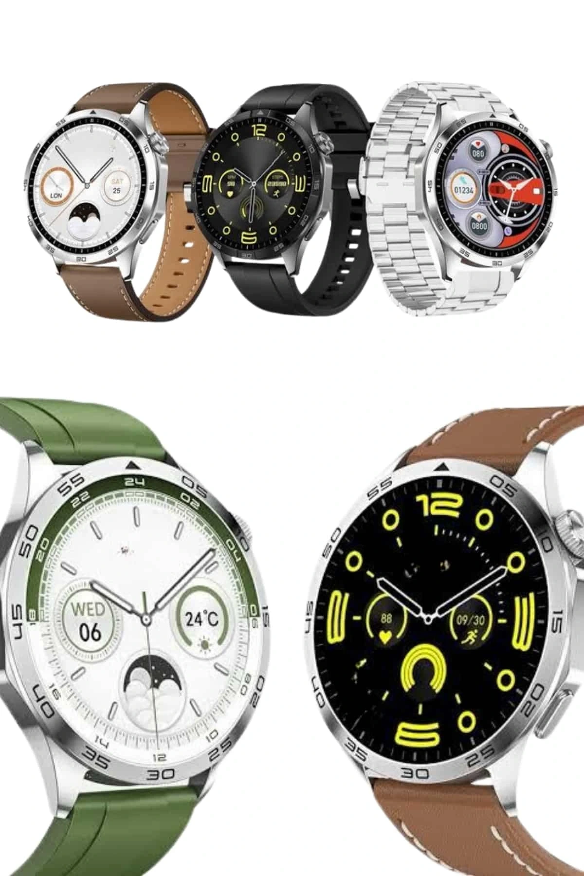 Şık ve Yüksek Performanslı Ekran1.55 inçlik büyük HD IPS ekran, 400*400 piksel çözünürlük sunarak tüm bilgileri net ve keskin bir şekilde görüntüler. Tam dokunmatik ekran ve 2.5D yüzey kapasitif tasarım, kolay ve hızlı gezinme imkânı sağlar. Metal, deri ve silikon olmak üzere üç farklı kordon seçeneği ile kişisel stilinize uygun bir kullanım sunar. Değiştirilebilir kordon özelliği sayesinde, saatinizi her zaman yenileyebilir ve farklı kombinlerle şıklığınızı yansıtabilirsiniz.Gelişmiş Sağlık ve Fitness TakibiBu akıllı saat, sağlık ve fitness takibi için birçok fonksiyona sahiptir. Nabız ölçer, tansiyon ölçer ve kalori ölçer gibi özelliklerle sağlığınızı izleyebilir, adım sayar, egzersiz kilometre kaydı ve uyku takibi ile günlük aktivitelerinizi takip edebilirsiniz. 100 farklı spor modu ile egzersizlerinizi kaydedebilir, gelişiminizi daha yakından izleyebilirsiniz. Ayrıca, SMS, WhatsApp ve sosyal medya bildirimlerini ekranınızda görüntüleyebilir, saat üzerinden telefon görüşmeleri yapabilirsiniz.Uzun Süreli Kullanım ve Kolay Bağlantı280 mAh kapasiteli batarya, uzun süreli kullanım için yeterli güç sağlar. Bluetooth 3.0, 4.0 ve 5.0 sürümleri ile uyumlu olup, akıllı telefonlarla kolayca bağlanır. Türkçe dil desteği, alarm, takvim, kronometre ve anti-kayıp hatırlatıcı gibi pratik özelliklerle günlük yaşamı kolaylaştırır. Hem pratik hem de şık olan bu akıllı saat, her ihtimale karşı kullanımınızı güvence altına alır.