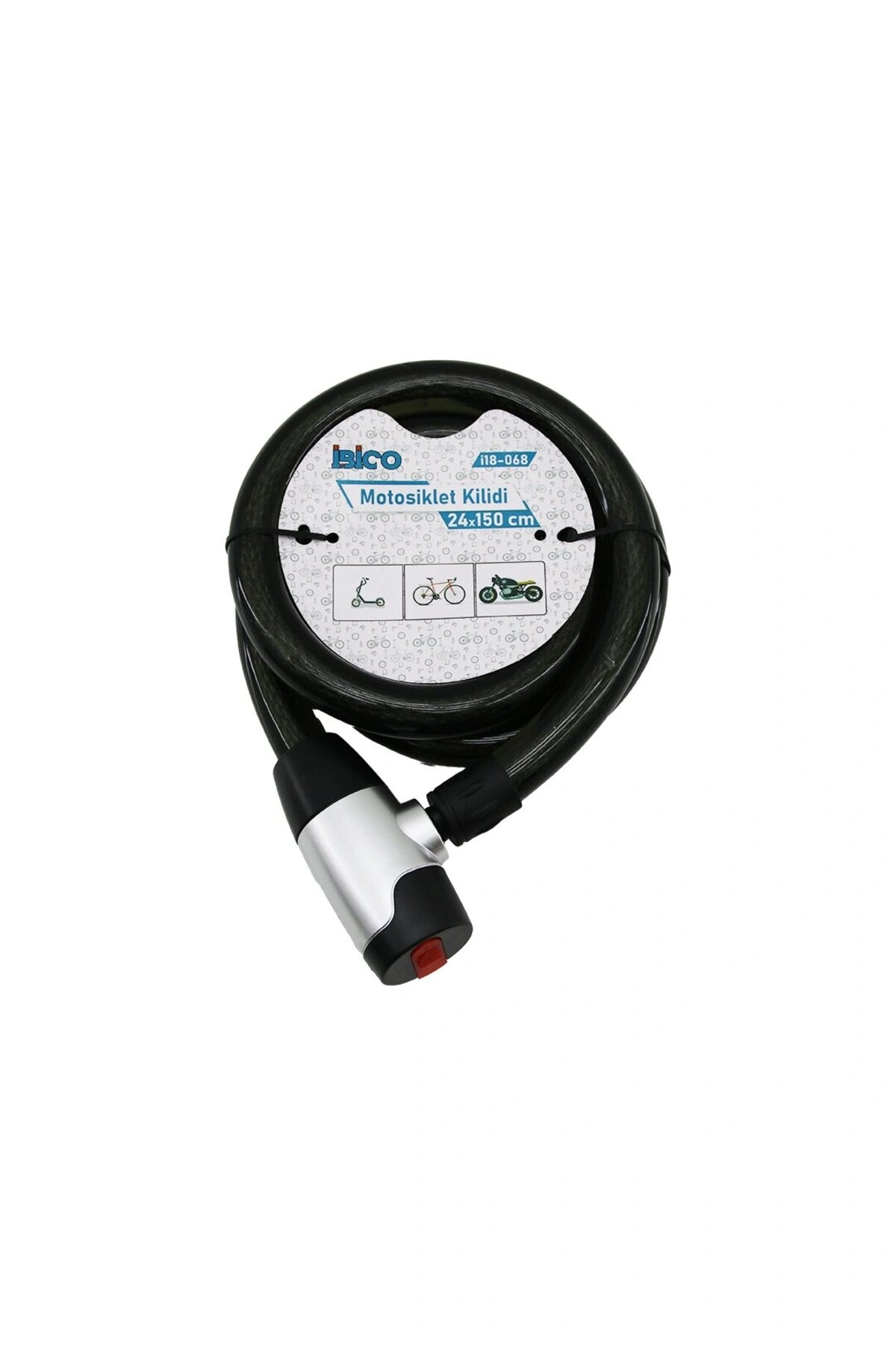 ANAHTARLI METAL KAPLAMA KAFAÇEK-İT KİLİT KAPAKMOTOR - BİSİKLET KİLİT ÇELİK TELSİYAH ŞEFFAF KILIF24MM