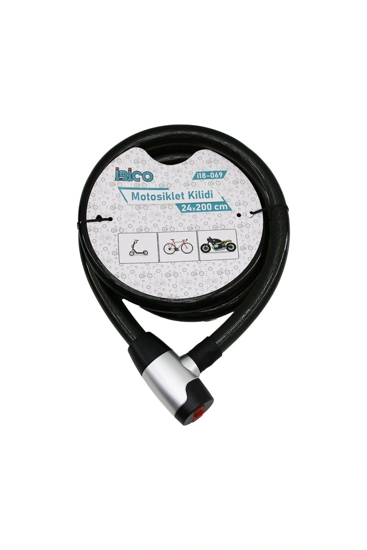 ANAHTARLI METAL KAPLAMA KAFAÇEK-İT KİLİT KAPAKMOTOR - BİS��KLET KİLİT ÇELİK TELSİYAH ŞEFFAF KILIF24MMX200CM