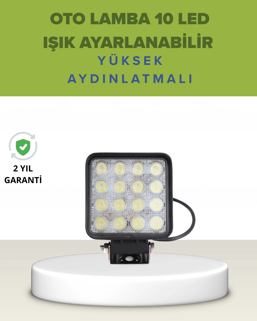 Sadece araçlar değil, aynı zamanda açık alan çalışma sahaları, garajlar ve kamp alanları için de kullanılabilen bu 16 LED'li far, çok yönlü bir aydınlatma çözümüdür. Kompakt boyutlarına rağmen yüksek ışık gücü sunar ve geniş alanı aydınlatmakta başarılıdır.Dayanıklı dış kasası darbe, toz ve neme karşı koruma sağlarken; geniş açılı LED’leri sayesinde karanlık ortamları güçlü şekilde aydınlatır. Gece inşaat çalışmaları, çiftlik alanları ve acil durum aydınlatmaları için idealdir. Pratik montajıyla hızlı kurulum sağlar.