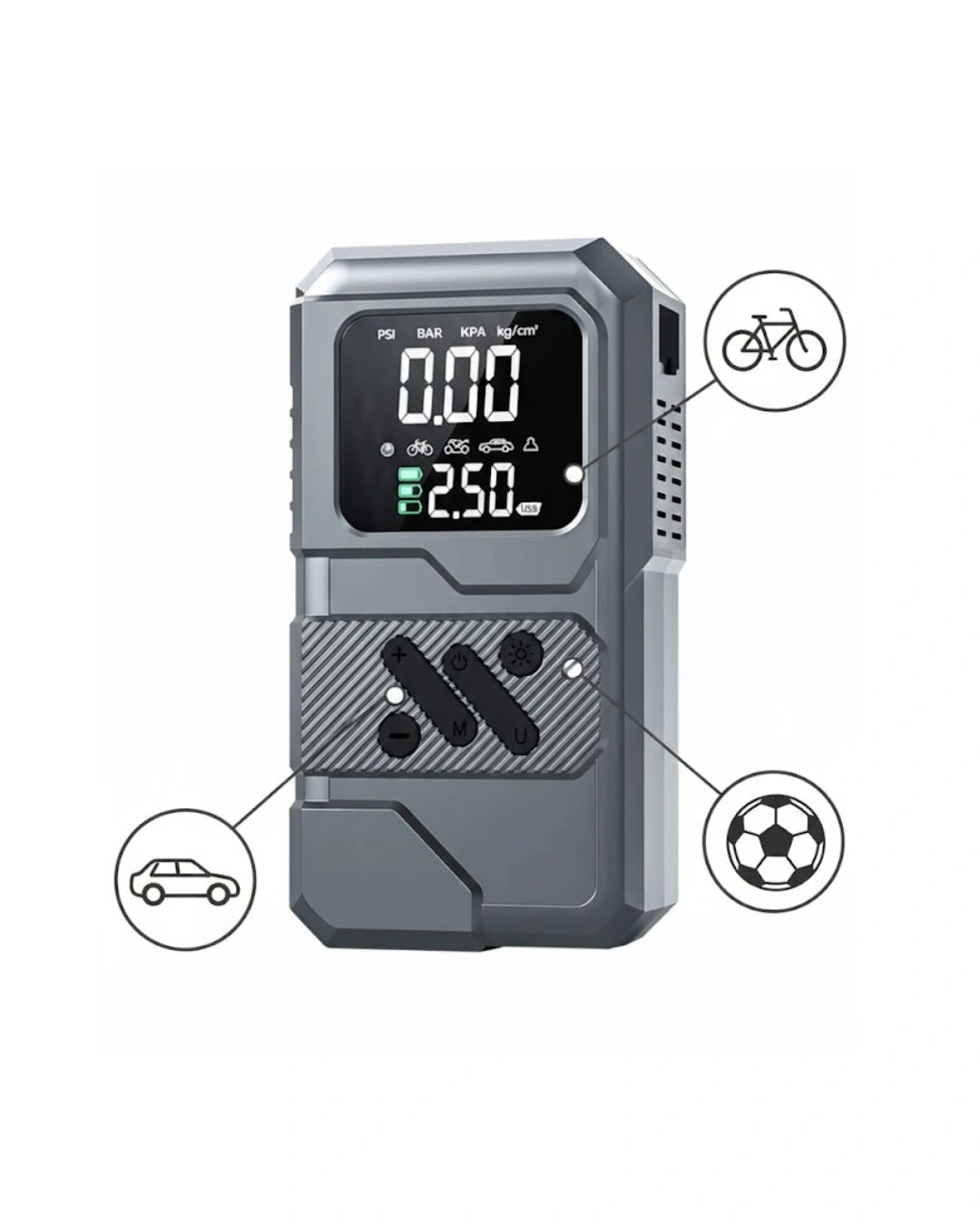 Bu taşınabilir akü takviye ve hava kompresörü, araç kullanıcılarının farklı ihtiyaçlarını tek bir cihazla karşılamayı hedefleyen çok amaçlı bir üründür. 12.000 mAh kapasiteli bataryası sayesinde hem araç aküsünü desteklemeye yardımcı olur hem de powerbank fonksiyonu ile dijital cihazların şarj edilmesini sağlar. Kompakt boyutları sayesinde araç bagajında veya torpido gözünde rahatlıkla taşınabilir. Akü takviye fonksiyonu, özellikle soğuk havalarda veya uzun süre kullanılmayan araçlarda yaşanan akü problemlerinde kullanıcıya destek sunar. Lastik şişirme özelliği, dijital hava kompresörü sayesinde kontrollü ve pratik bir kullanım sağlar. Araç lastikleri, bisiklet lastikleri ve diğer şişme ürünler için uygun basınç değerlerine kolayca ulaşılmasına yardımcı olur. LED aydınlatma sistemi, gece yolculuklarında veya acil durumlarda ek güvenlik sağlar. Düşük ışık koşullarında çevrenin aydınlatılmasına yardımcı olurken, sürücünün işlemleri daha güvenli şekilde yapmasına katkı sunar. Powerbank fonksiyonu sayesinde telefon ve diğer elektronik cihazlar şarj edilebilir, bu da özellikle uzun yolculuklarda büyük bir avantaj sağlar. Dayanıklı gövde yapısı ve taşınabilir tasarımı, ürünü hem şehir içi kullanım hem de uzun yolculuklar için uygun hale getirir. Taşıma kesesi ile birlikte sunulması, ürünün düzenli saklanmasını ve taşınmasını kolaylaştırır. Çok fonksiyonlu yapısı sayesinde araçta bulundurulması önerilen ekipmanlar arasında yer alır.